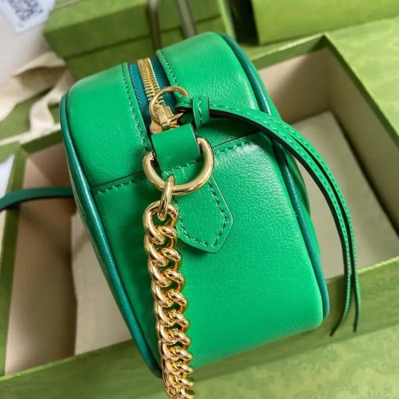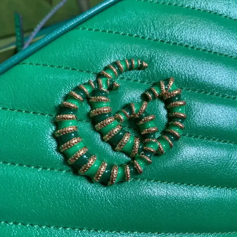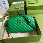 Matelassé Chevron Small Marmont Shoulder Bag Green Leather 447632