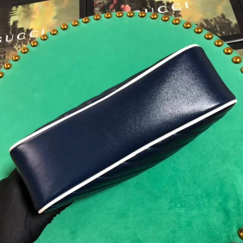 Discover a blend of classic style and modern versatility with this chic small shoulder bag. Crafted from leather with a sophisticated diagonal matelassé quilted finish, this piece is elegantly outlined with a contrasting dark blue leather trim. Its compact, structured shape makes it an ideal companion for any occasion, seamlessly transitioning from daytime errands to evening outings.