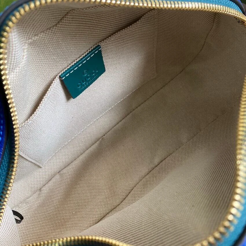 - Blue diagonal matelassé leather