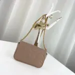 A standout feature is the convenient attached key ring, allowing you to secure this mini bag to a larger tote for seamless organization. The gleaming gold-toned hardware adds a touch of classic refinement, complementing the bag’s sleek flap closure. The slender chain strap provides a comfortable and stylish way to carry your essentials on the go.