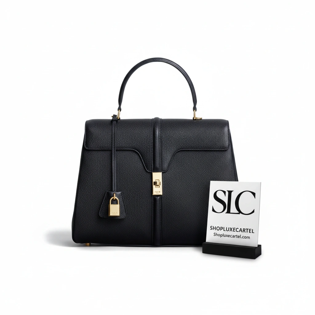 Discover a timeless classic in this beautifully structured top handle satchel. Expertly crafted from premium grained calfskin with a supple lambskin lining, this bag exudes understated luxury. Its clean lines and sophisticated silhouette are accented with polished gold-tone hardware, creating an accessory of enduring style and impeccable quality.