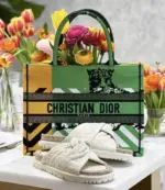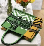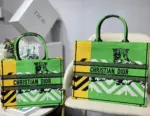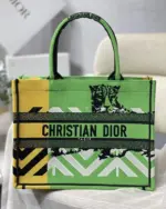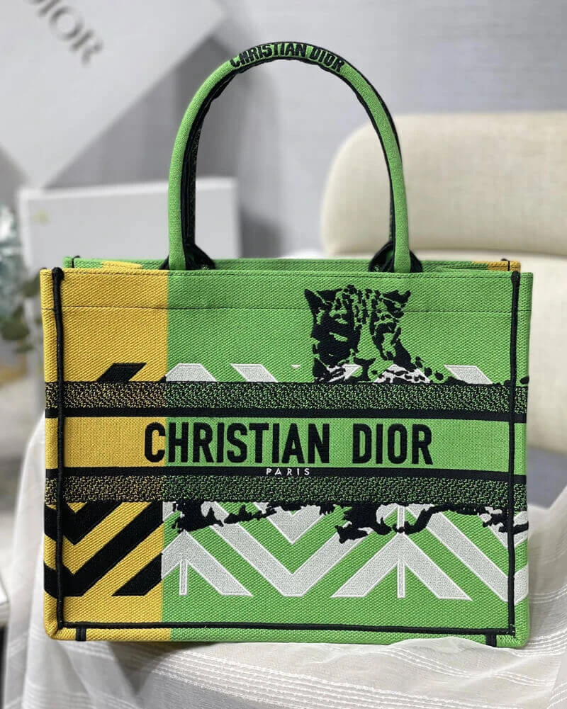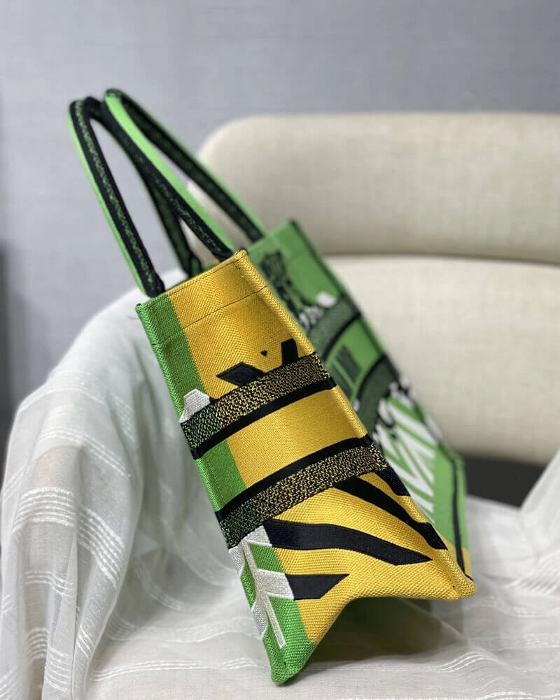 Medium Book Tote with Bright Green D-Jungle Pop Embroidery M1296