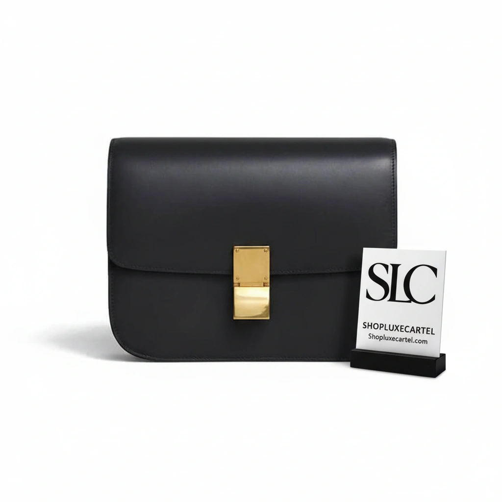 Discover a timeless accessory crafted for enduring style. This medium shoulder bag showcases a classic, structured silhouette made from luxurious polished box calfskin, offering a smooth and refined finish. Its clean lines and minimalist design make it a versatile piece that effortlessly elevates any ensemble, from casual daywear to sophisticated evening looks.