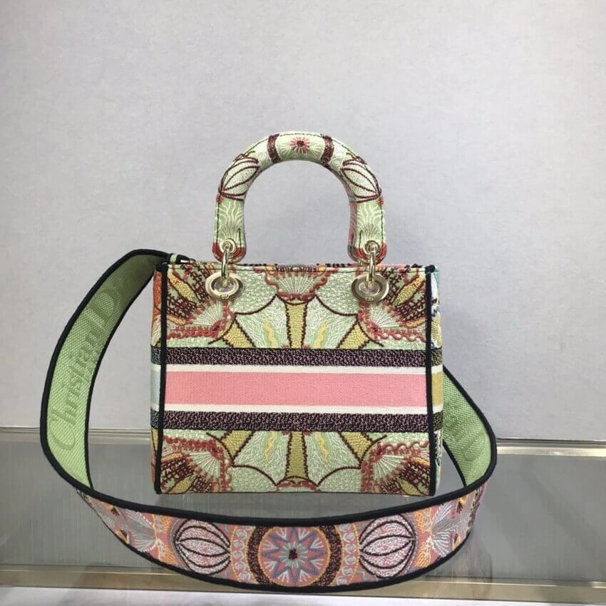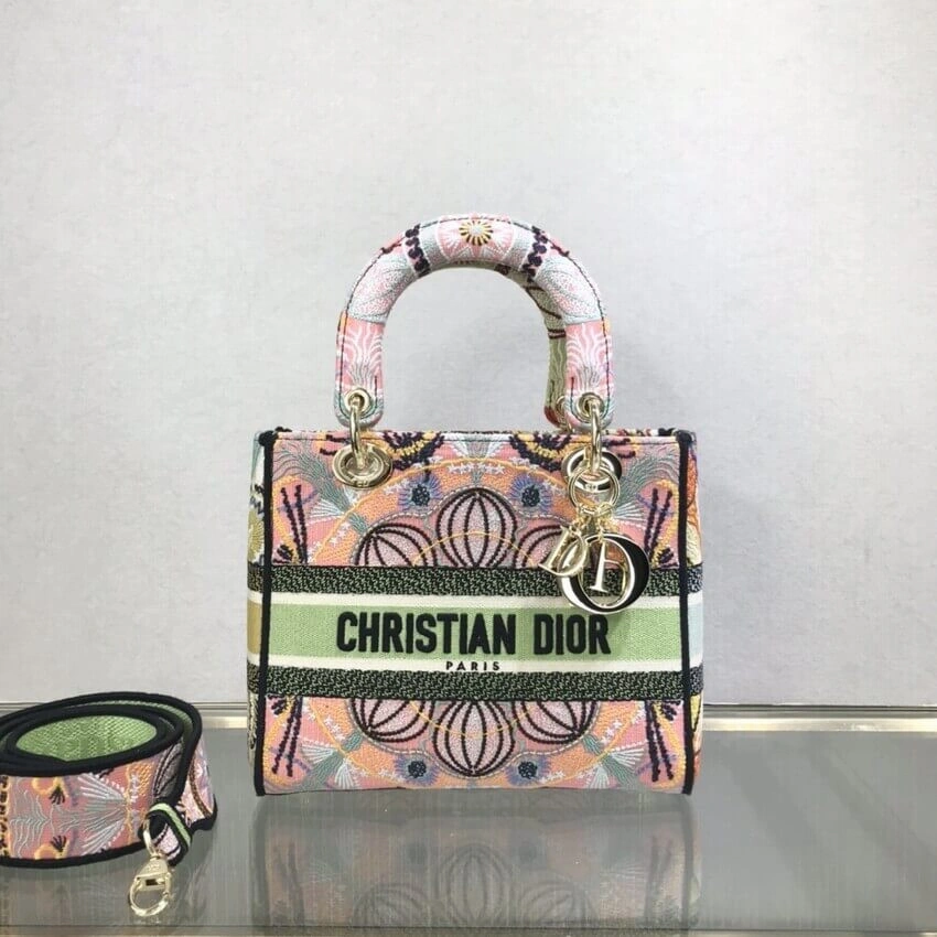 Medium Lady D-Lite Top Handle Bag with Lights Embroidery M0565