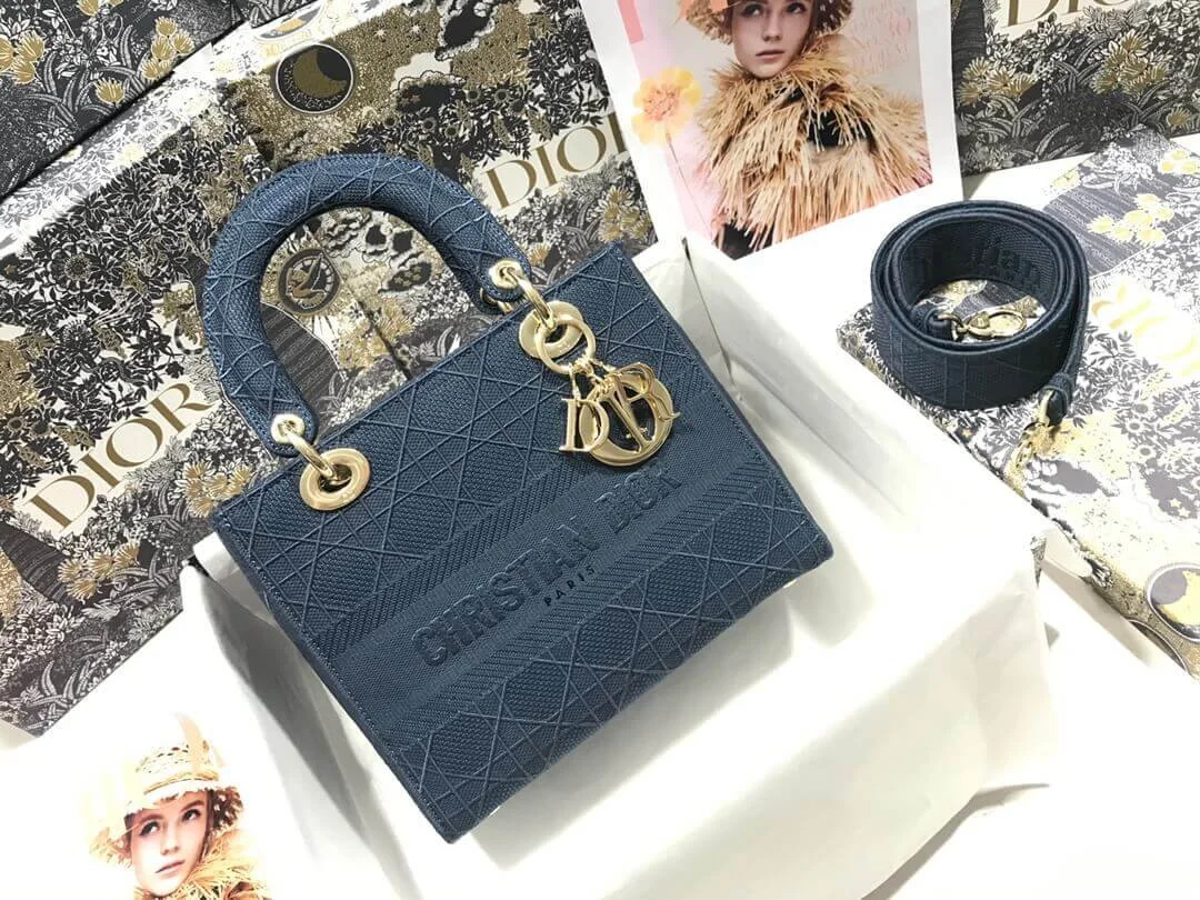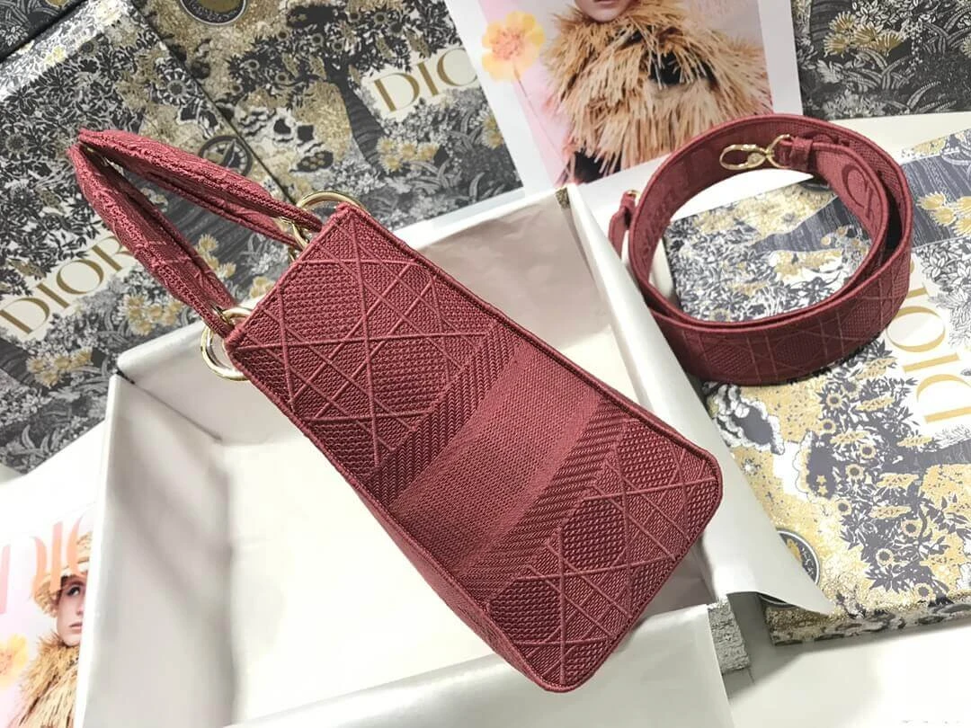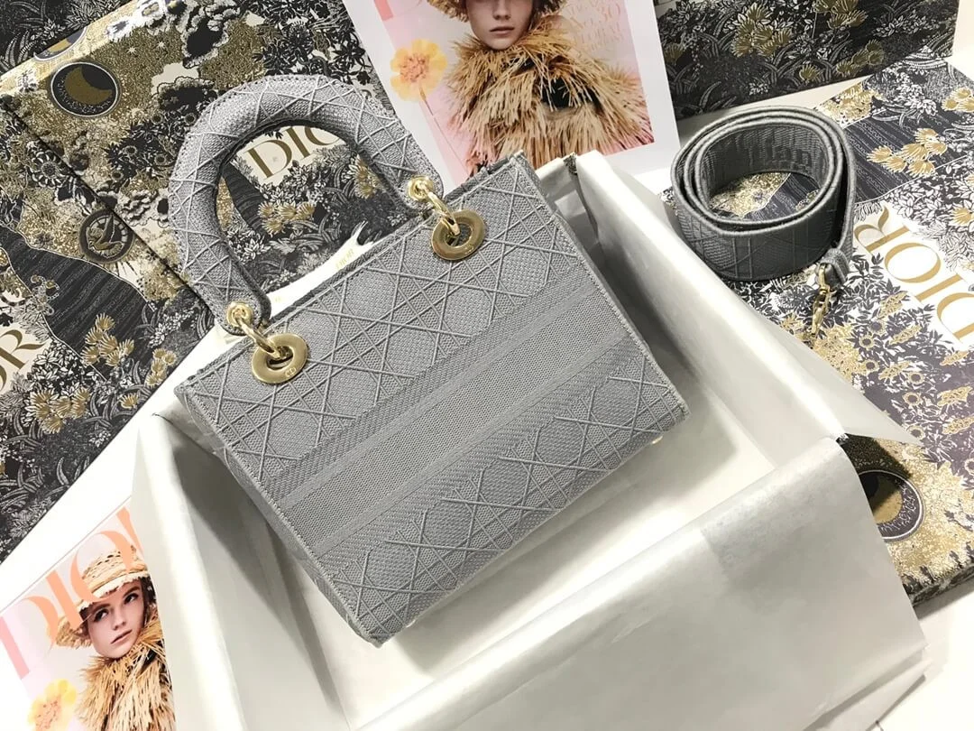 Medium Lady D-Lite Top Handle Cannage Embroidery Bag M0565
