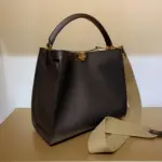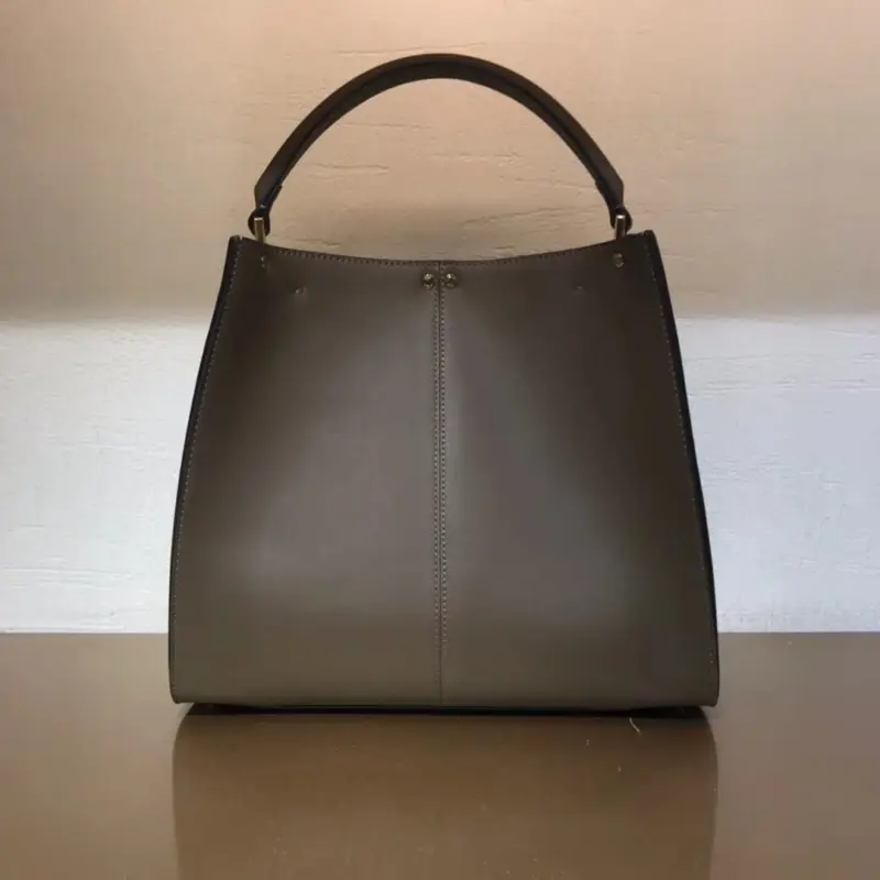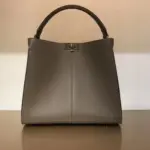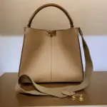 Discover a masterpiece of modern craftsmanship with this elegantly structured top handle satchel. Designed for effortless sophistication, this medium-sized bag is crafted from supple khaki calfskin, offering a timeless look and a luxurious feel. Its versatile design features a sturdy single handle and a detachable canvas shoulder strap, allowing it to be carried by hand, worn on the shoulder, or styled as a crossbody for hands-free convenience.
