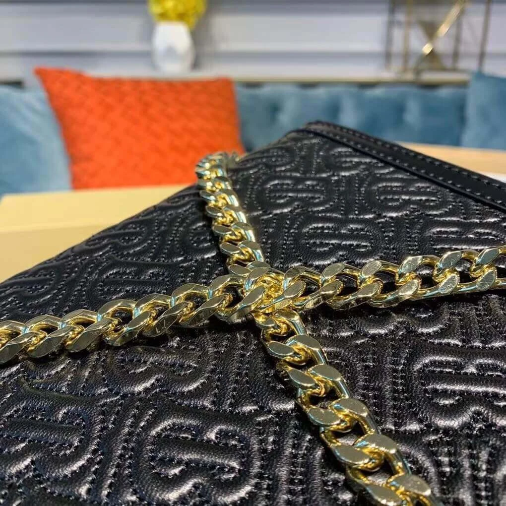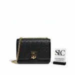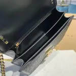 Designed for versatile styling, this piece features an adjustable chain shoulder strap that can be worn at a short length on the shoulder or extended for a modern crossbody look. Its thoughtfully organized interior, complete with multiple compartments and pockets, makes it an essential accessory for any occasion.