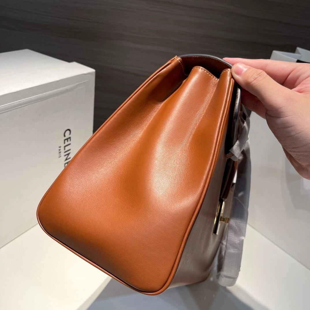Discover a timeless accessory crafted for sophistication and everyday elegance. This top handle bag is meticulously constructed from smooth, high-quality calfskin, offering a refined texture and a gracefully structured silhouette. Its classic design is complemented by polished gold-finish hardware and a distinctive turn-lock closure, ensuring your essentials are stored securely and in style.