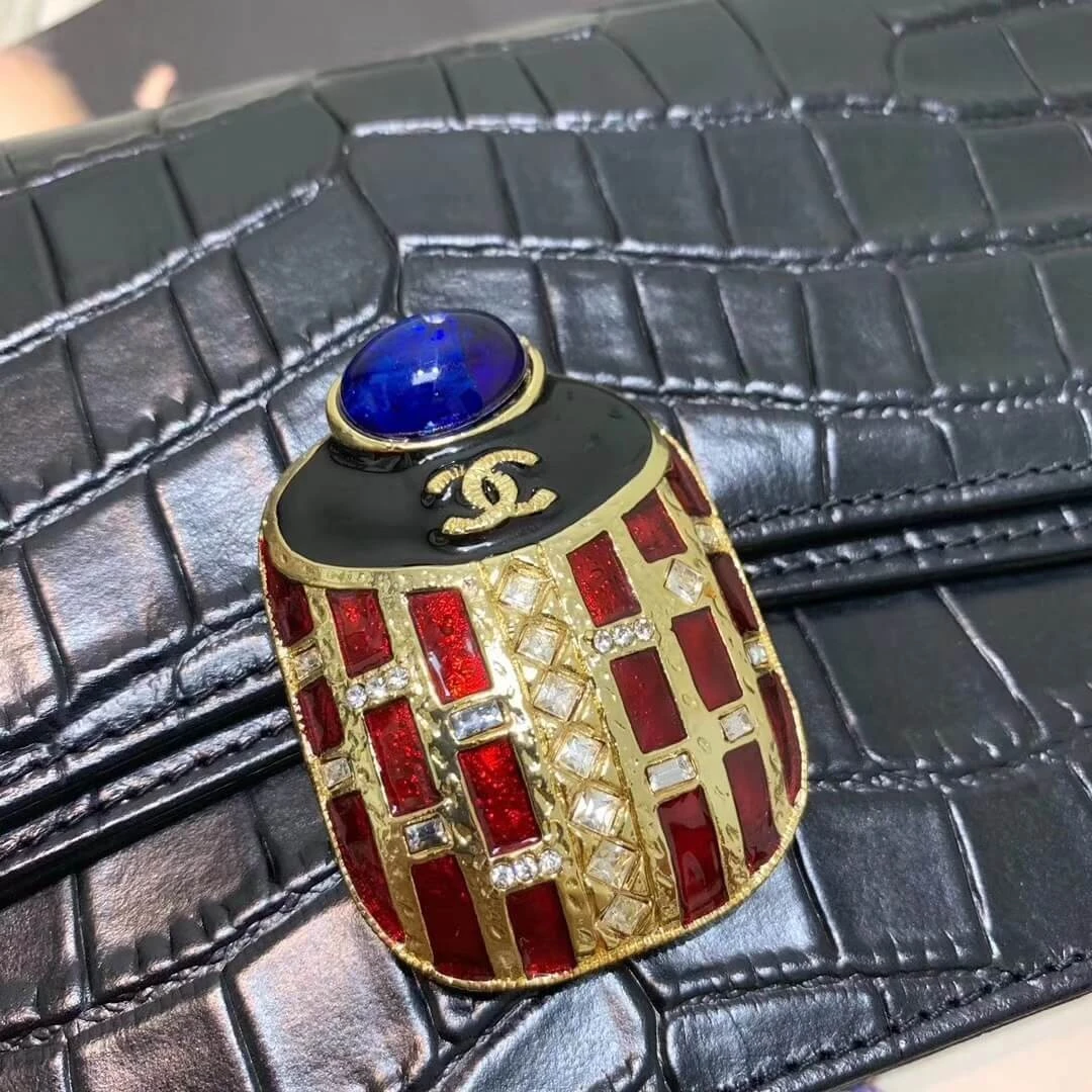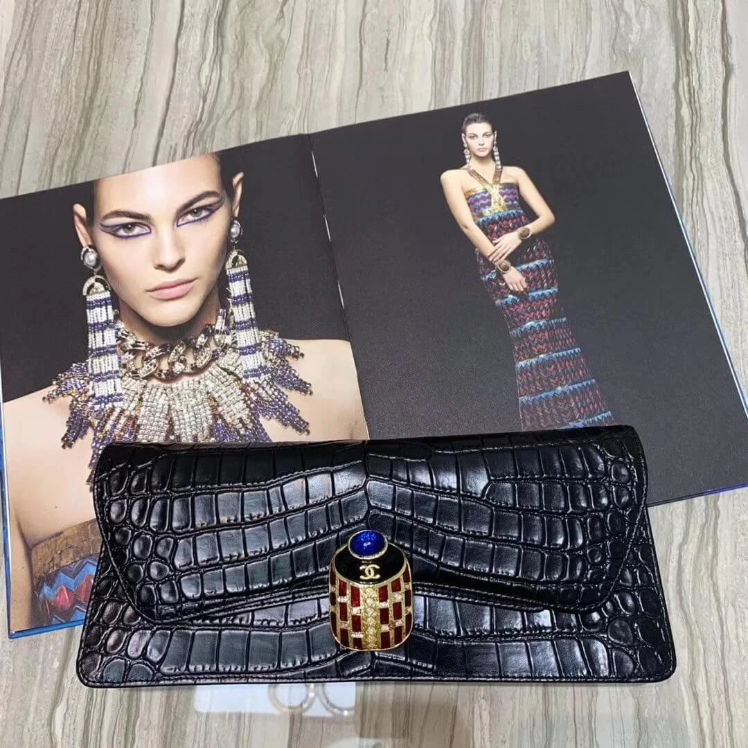 Metallic Crocodile Embossed Evening Chain Clutch Bag AS0857