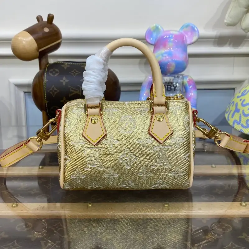 Metallic Gold Nano Top Handle Mini Boston Bag M82242