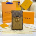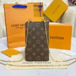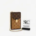 An exterior pocket is perfectly sized to fit most late-model smartphones, ensuring your device is always within reach. The secure zippered interior reveals a well-organized space with multiple compartments and numerous card slots. For added versatility, attach the polished golden chain to wear it as a chic cross-body, or remove it to slip this elegant piece into a larger handbag.