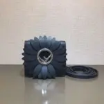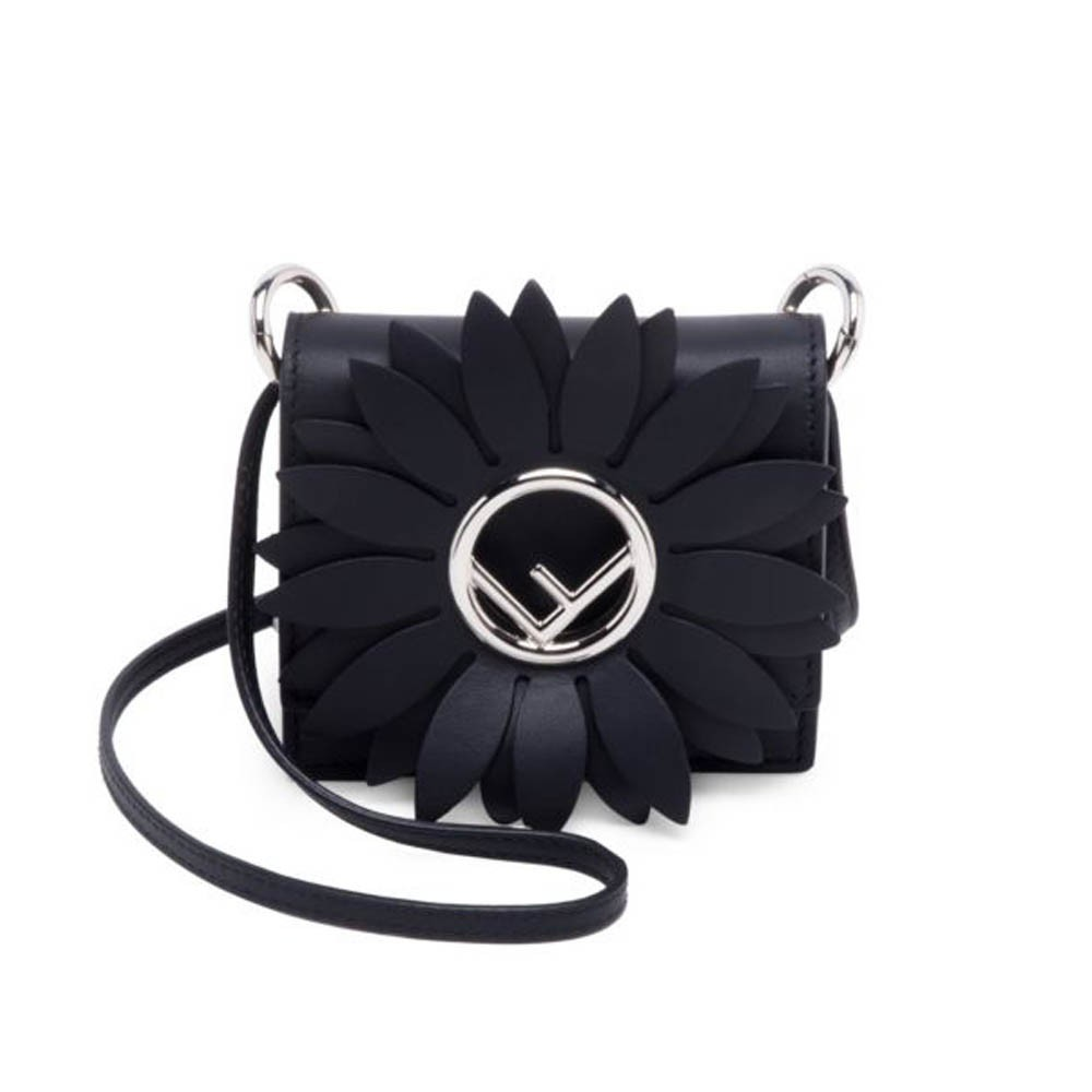 Designed for versatility, this miniature handbag features a removable strap that allows it to be worn comfortably as a crossbody. For another styling option, a spring clip on the side lets you attach it to a larger bag as a chic charm. The look is completed with polished, palladium-finished metal hardware and a distinctive hollowed-out metal accent at the center of the flap.