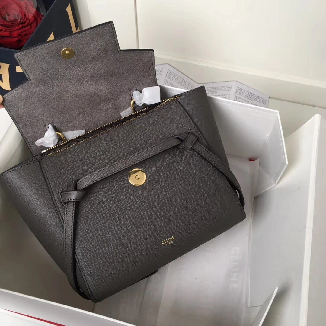 Micro Top Handle Bag in Grey Grained Calfskin 189153