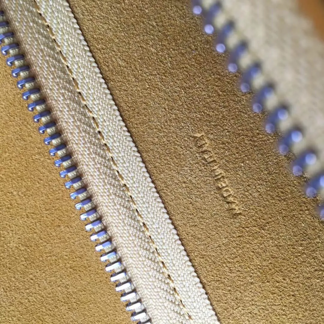 - Closure: Flap with a hidden metallic piece and a zipped closure underneath