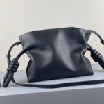 Discover timeless elegance with this beautifully crafted clutch, designed with a soft, sculptural silhouette. Made from exquisitely supple nappa calfskin, this bag offers a luxurious feel and a minimalist aesthetic. Its signature feature is a clever drawstring closure that pulls the sides inward, creating a distinctive and refined scrunched top.