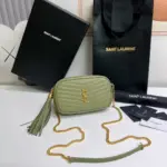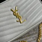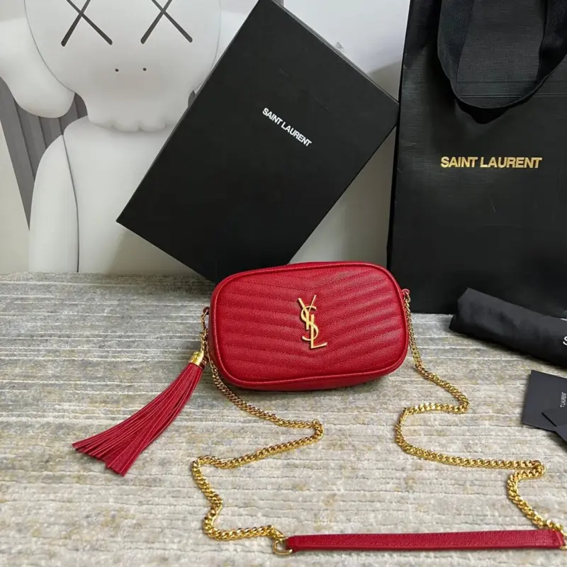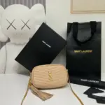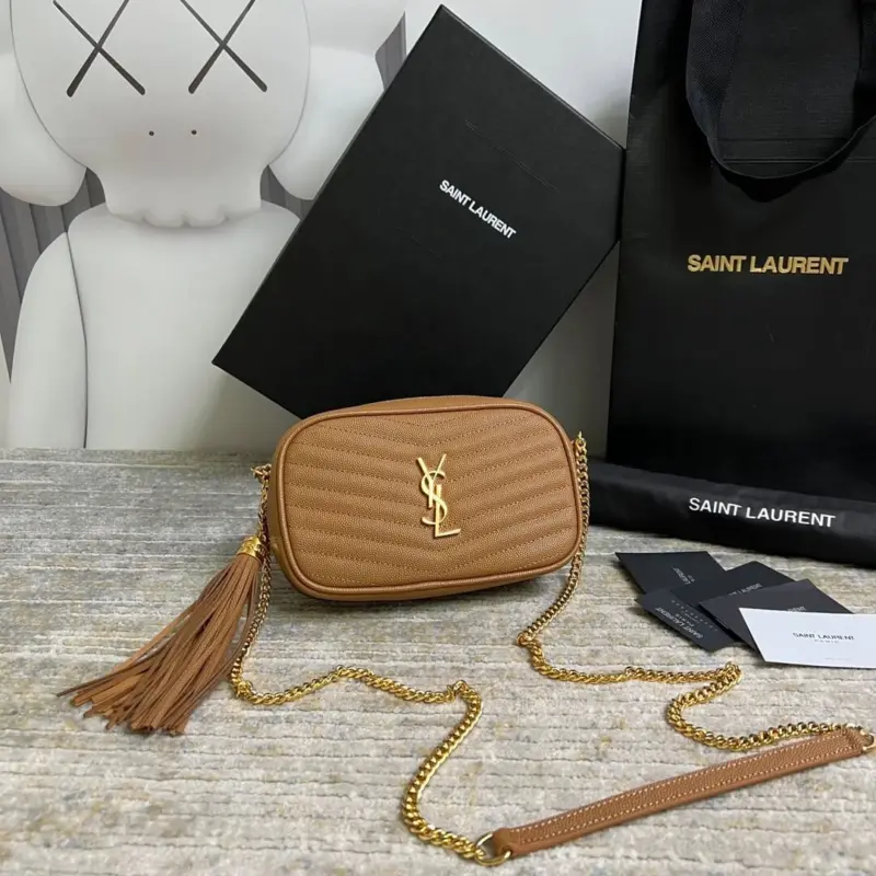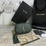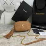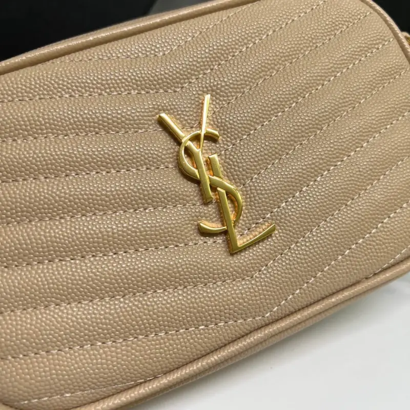 Crafted from luxurious calfskin leather, this camera-style crossbody bag showcases a sophisticated chevron-quilted finish. Its compact yet structured silhouette is perfect for both day-to-day errands and evening outings, offering a touch of timeless elegance to any look.