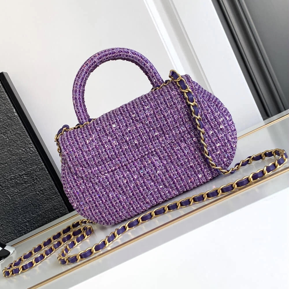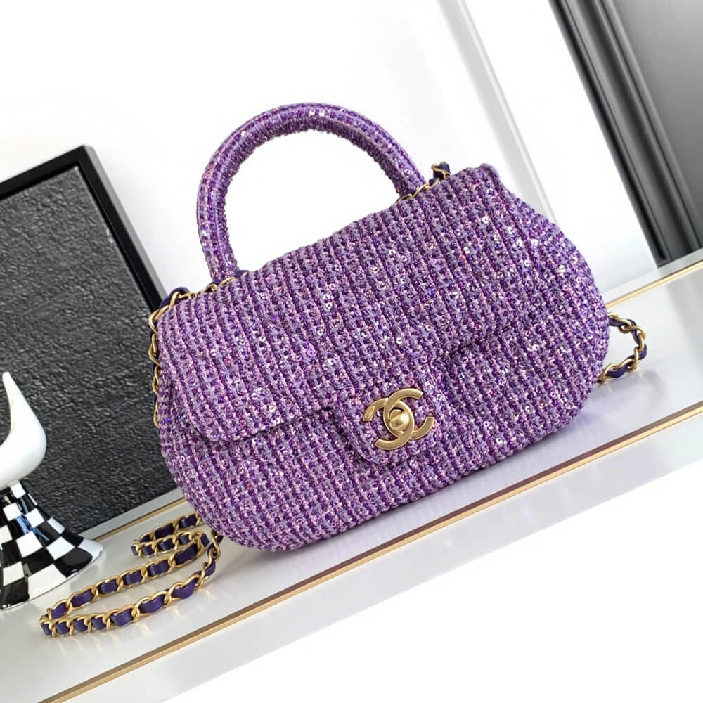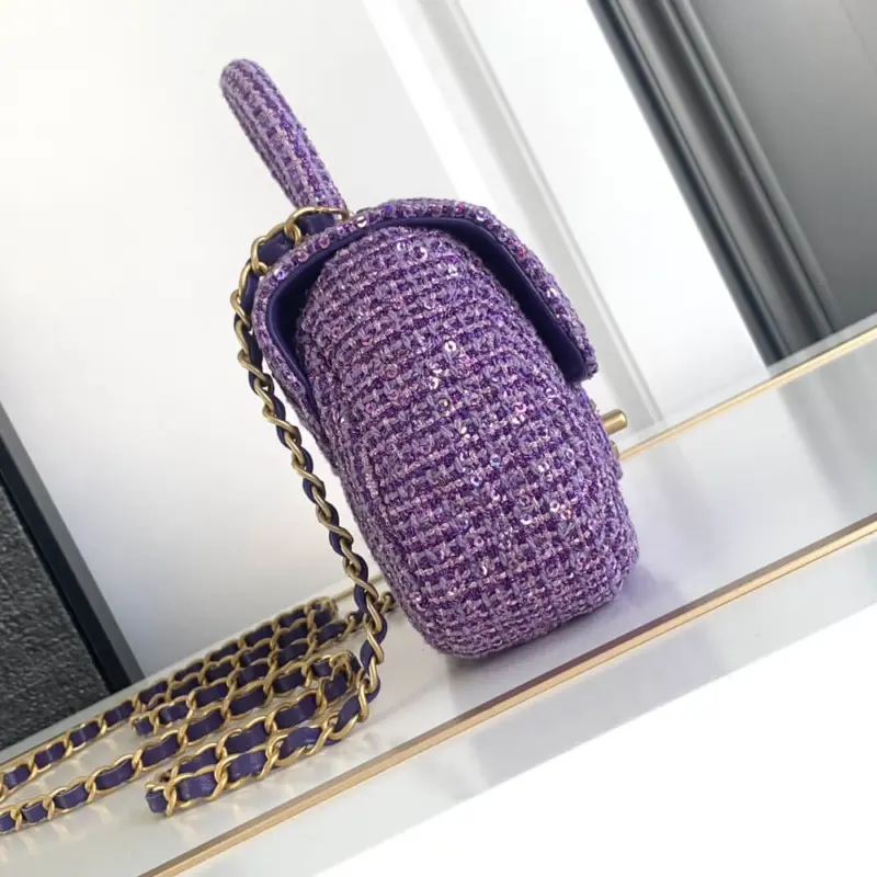 Mini Sequin Flap Bag with Top Handle Purple Tweed AS4573