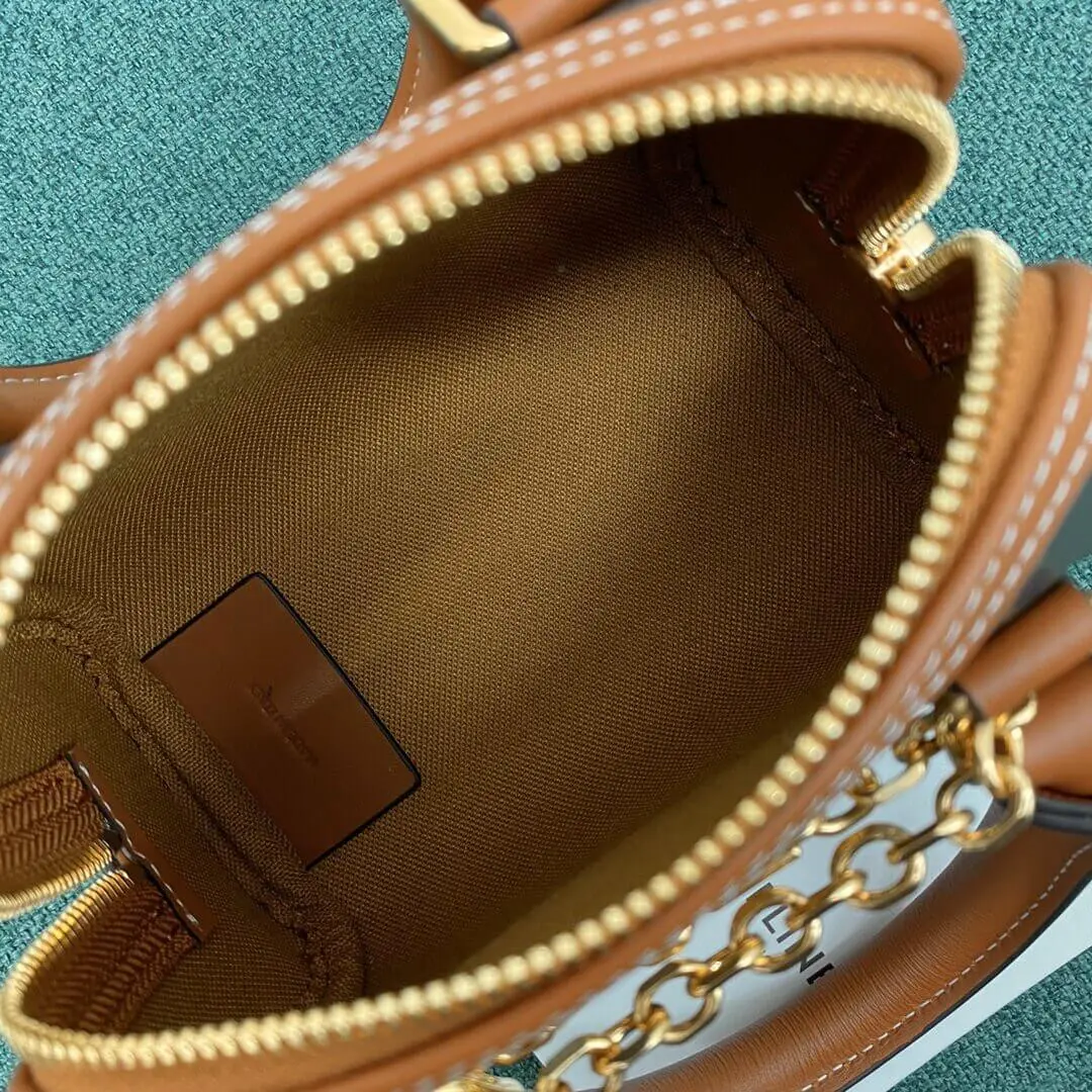 Designed for versatility, this bag can be carried by its classic top handles, worn gracefully over the shoulder, or styled as a convenient cross-body bag using the detachable strap. A decorative chain detail around the handles offers a unique opportunity for personalization with your favorite charms, making this chic accessory uniquely yours.