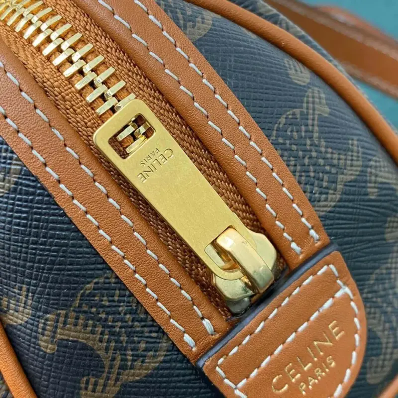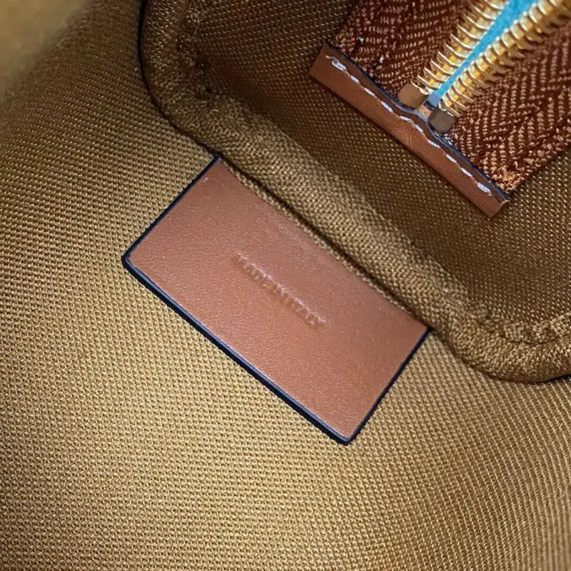 - Materials: Coated canvas with a triumphal arch print and calfskin leather trimmings