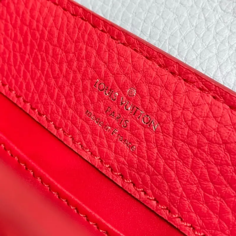 Its structured silhouette is thoughtfully designed with a dual-wear flap that can be styled tucked inside or worn elegantly on the outside. The well-organized interior is perfect for securing your essentials, while protective metal studs on the base ensure the bag remains in pristine condition.
