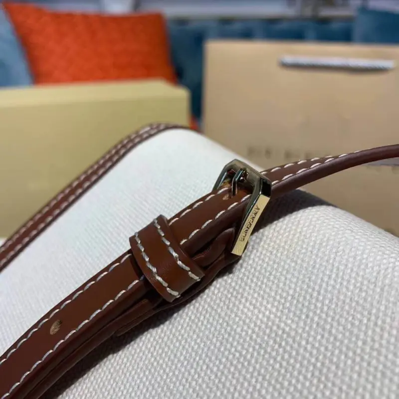 Discover the epitome of versatile elegance with this structured crossbody bag, expertly crafted from a sophisticated two-tone canvas and smooth, supple leather. Its compact and refined silhouette makes it an ideal accessory for any occasion, seamlessly transitioning from a shoulder bag to a crossbody or even a chic clutch. The clean lines and luxurious materials offer a timeless appeal that complements any wardrobe.