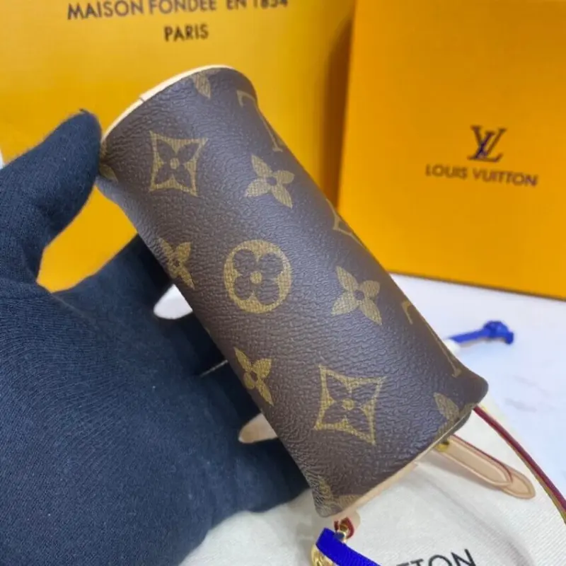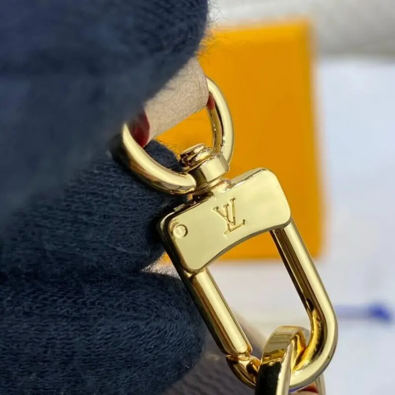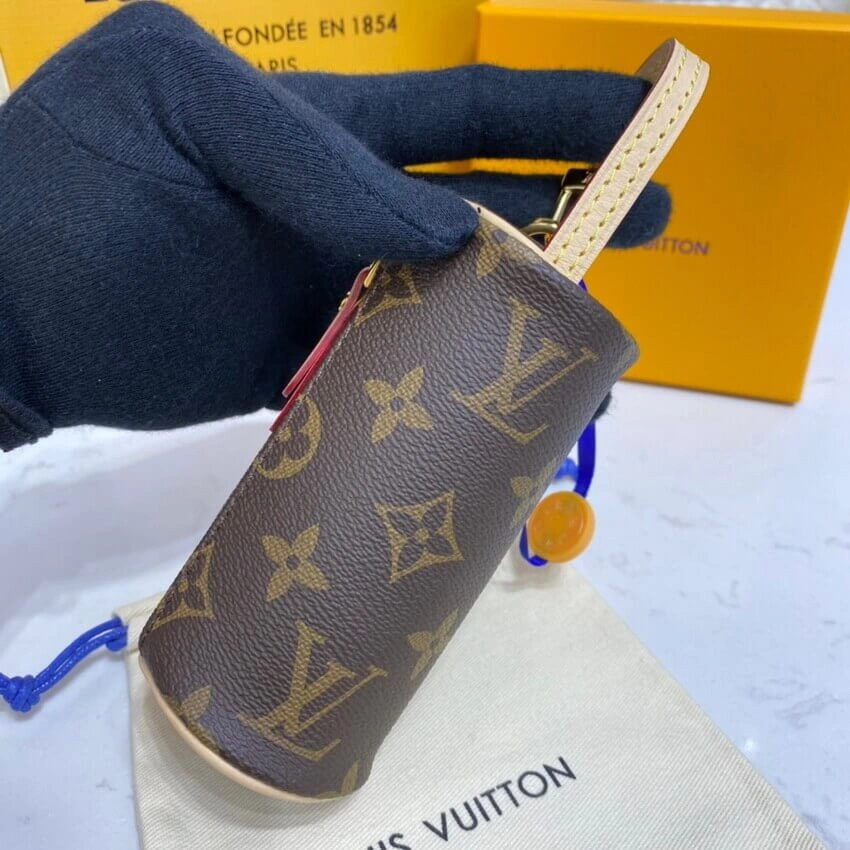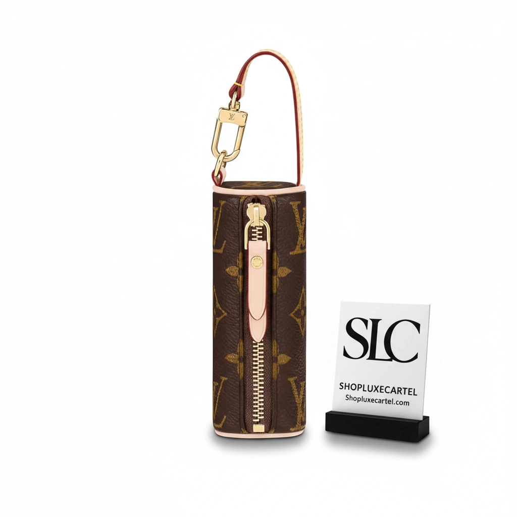 Equipped with a secure zip closure and a gleaming gold-tone lobster clasp, this miniature pouch is perfect for safeguarding small essentials like earphones, coins, or a lip balm. Attach it to a larger tote or handbag for an extra touch of charm and convenient storage, making it a true collector’s item for any enthusiast of classic design.