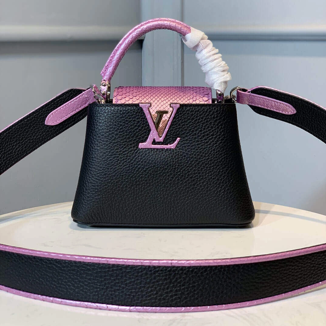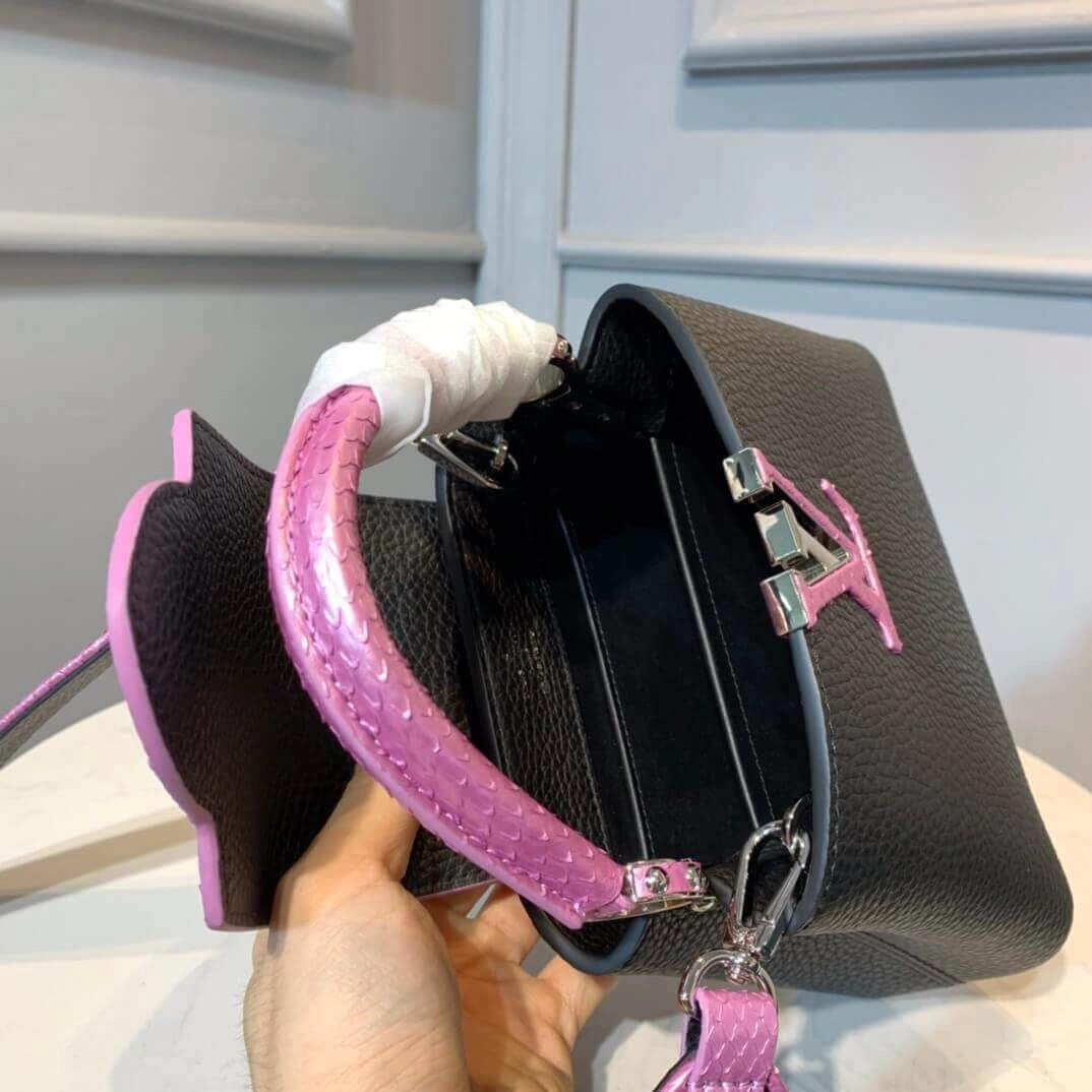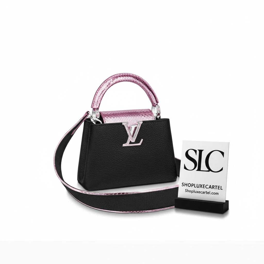 Miniature Top Handle Bag in Taurillon and Ayers Snakeskin M55914