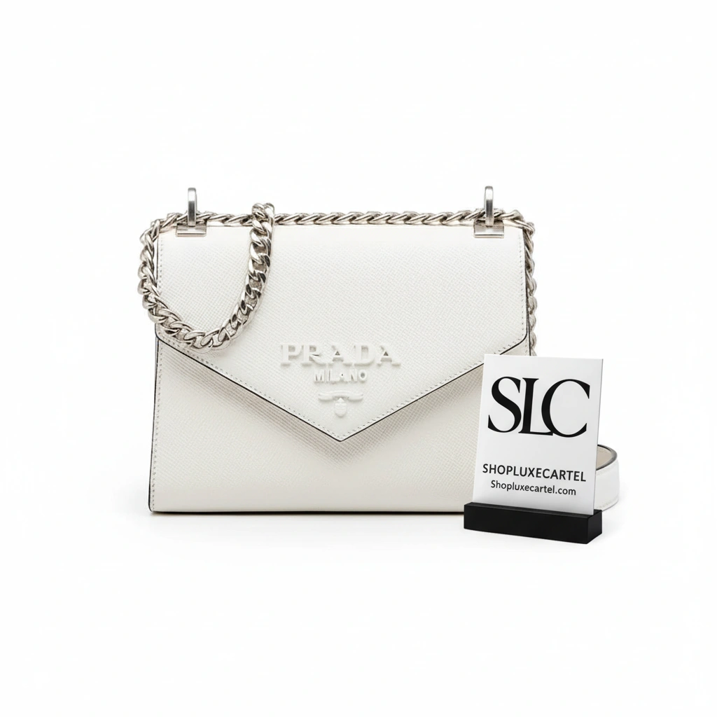 The bag’s elegant look is enhanced by polished, tonal hardware that maintains its sleek, single-color aesthetic. An adjustable chain-link shoulder strap offers versatile carrying options, allowing you to wear it comfortably as a crossbody or shorten it for a shoulder style. The interior is thoughtfully designed with two pockets to keep your essentials organized and easily accessible, all secured by a simple magnetic closure.