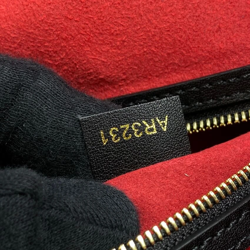 - Printed canvas with a distinctive cameo and geometric pattern