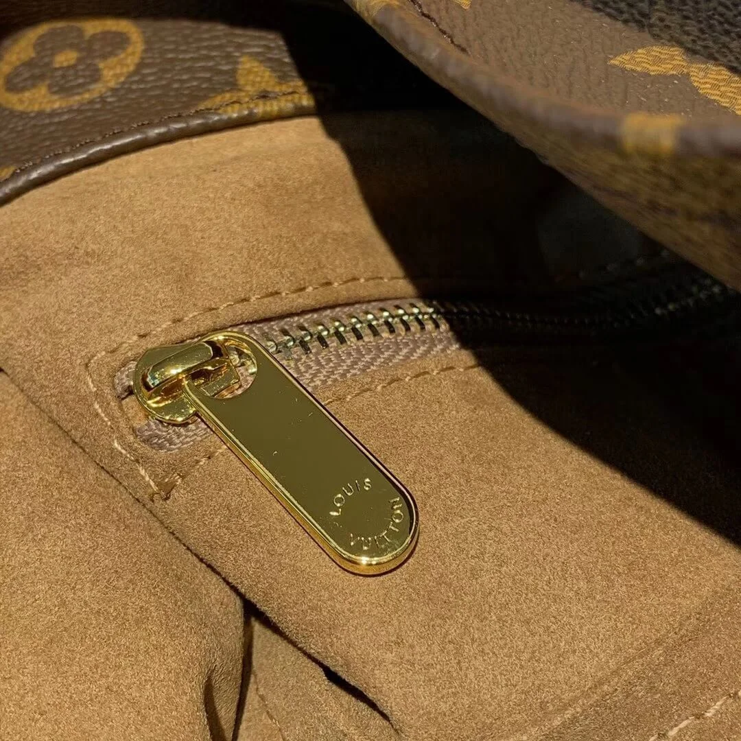 This shoulder bag embodies an understated, bohemian style with its supple, slouchy silhouette. Crafted from a durable coated canvas with a classic monogram print, it is elegantly accented with genuine python details and rich, golden-finish metallic hardware. The exquisite, handcrafted leather handle is reinforced with distinctive cross-stitching, ensuring a comfortable carry on the shoulder or elbow.
