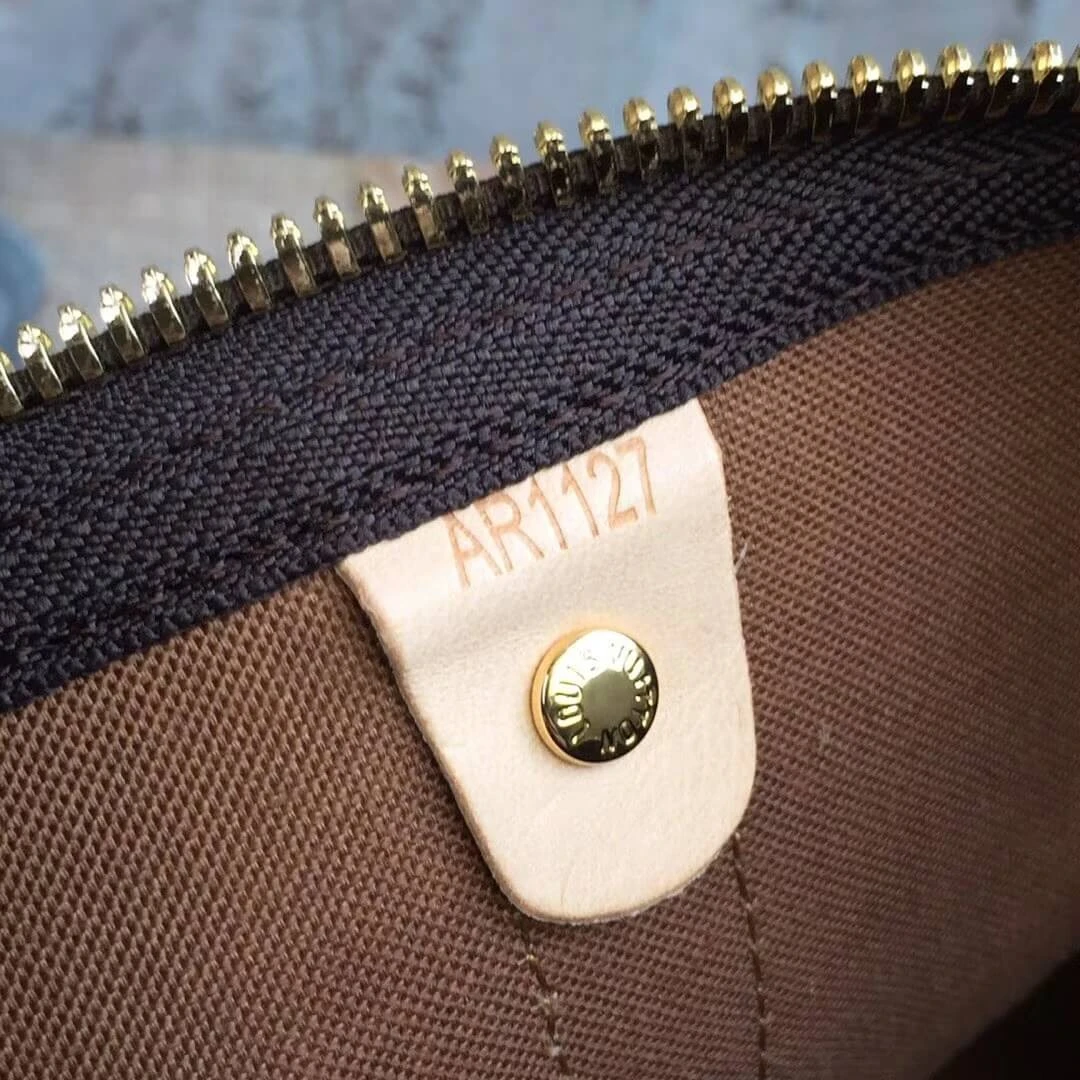 Showcased in a classic geometric monogram print, this bag features versatile carrying options with comfortable rounded leather handles and a removable strap for casual cross-body wear. Finished with gleaming metallic hardware, it’s a timeless choice for any journey.