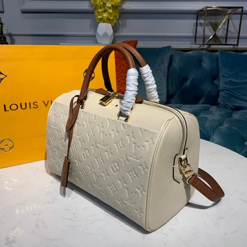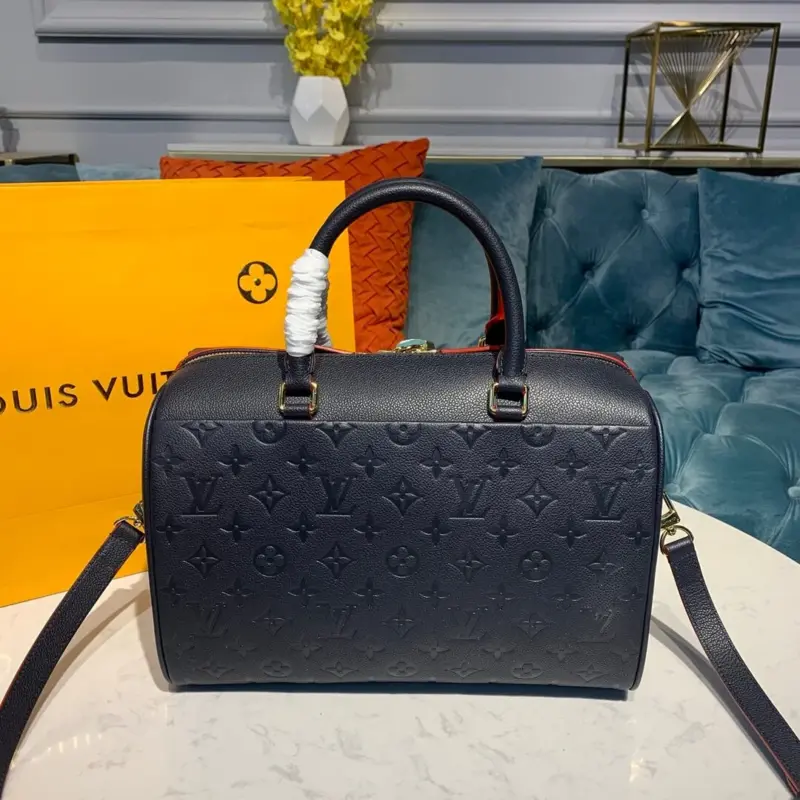 Monogram Embossed Leather Boston Bag with Shoulder Strap 30 M43503
