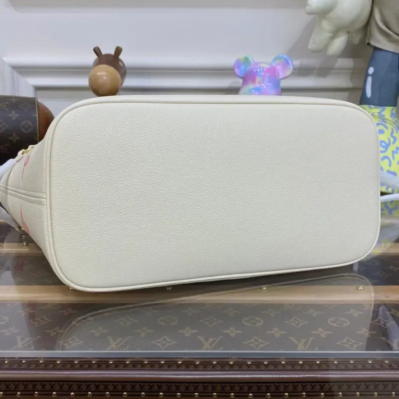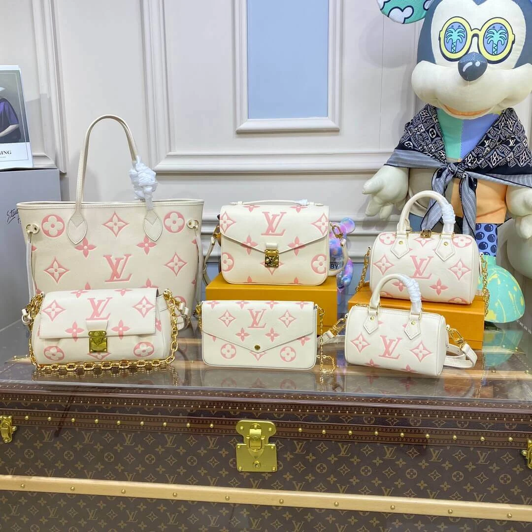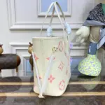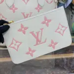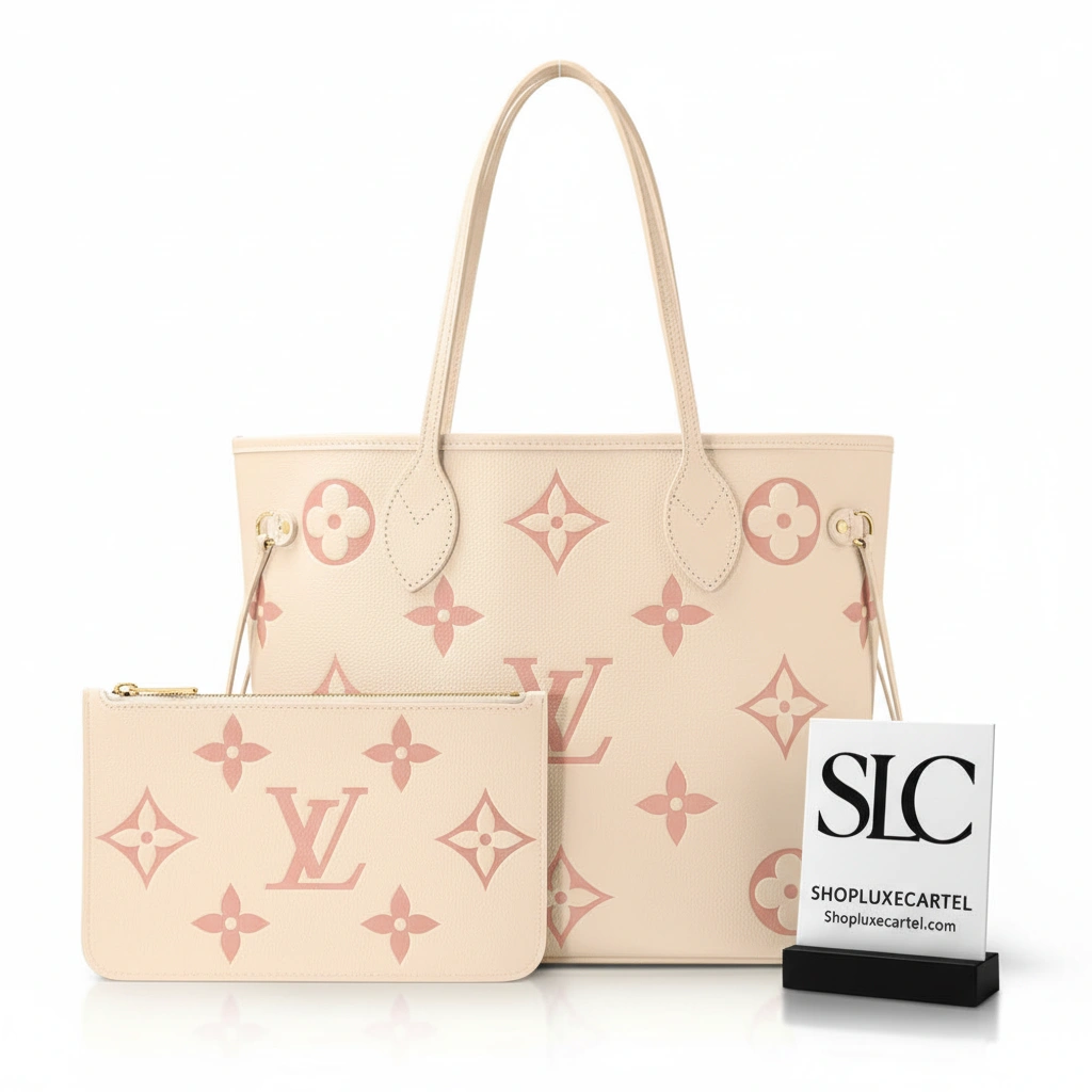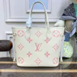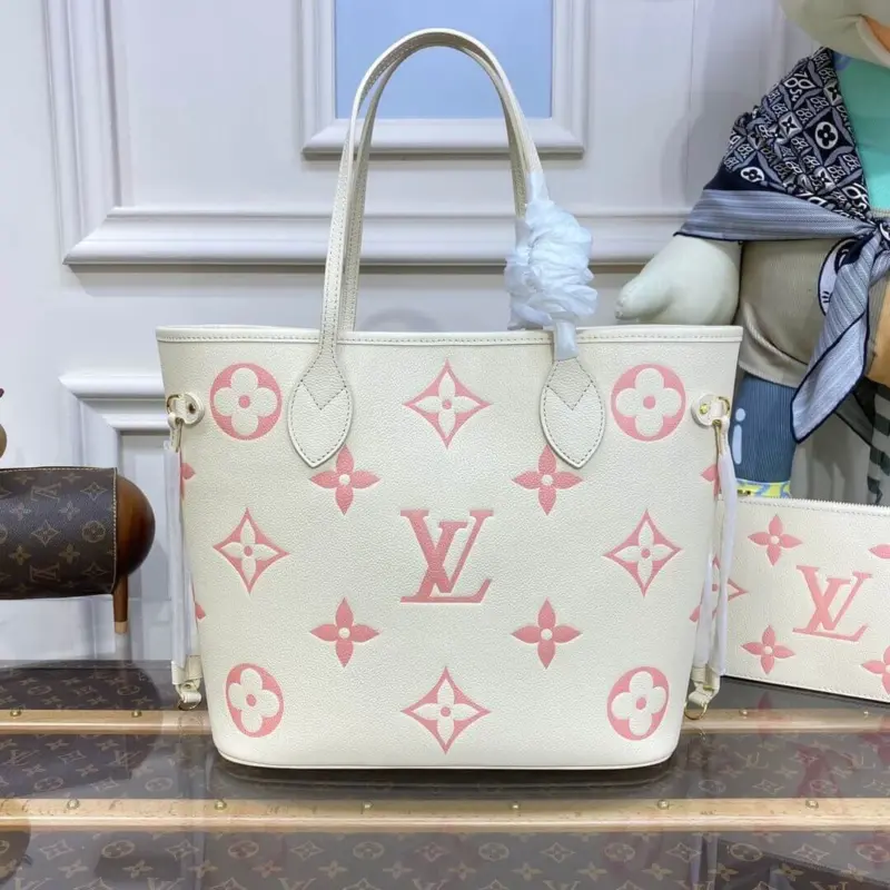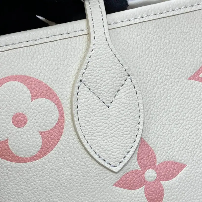 Monogram Embossed Leather Medium Tote Bag in Creme/Pink M21579