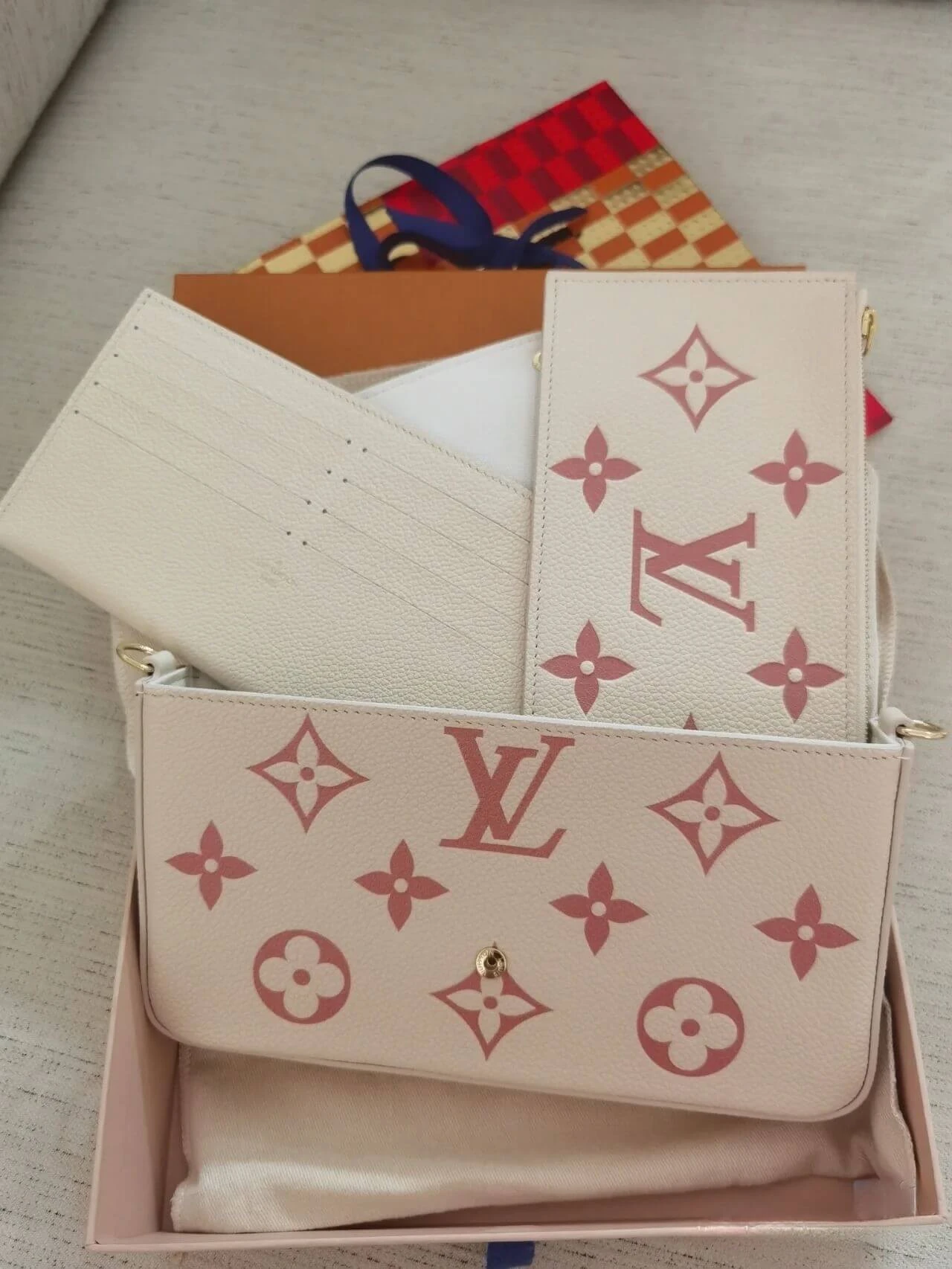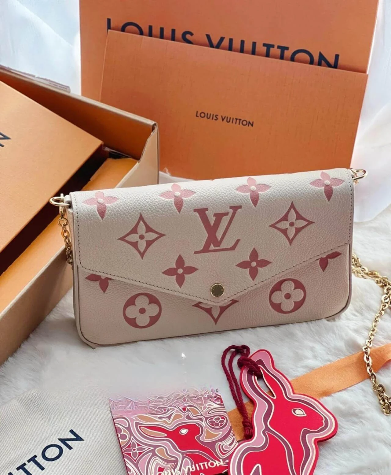 Monogram Embossed Leather Pochette Chain Crossbody Bag Pink M82047