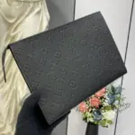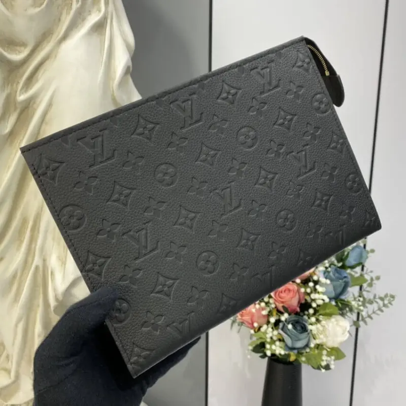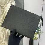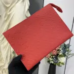 Expertly crafted from supple cowhide leather featuring a sophisticated embossed motif, this large toiletry pouch is an elegant solution for organizing your essentials. Its timeless design makes it an ideal accessory for daily use or travel, effortlessly storing beauty products, jewelry, and other personal items.