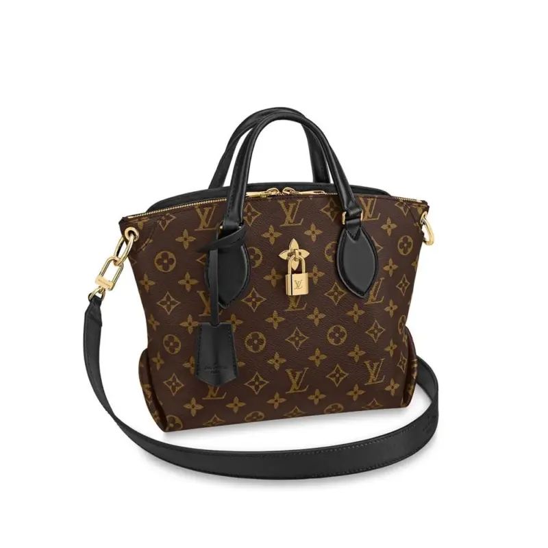 This versatile carry-all is as functional as it is fashionable. The spacious, well-organized interior and convenient side compartments provide easy access to your essentials. A gleaming, golden flower-shaped padlock adds a signature finishing touch, securing your belongings with style.