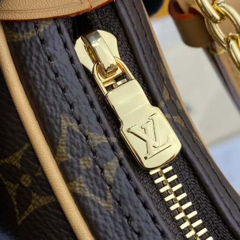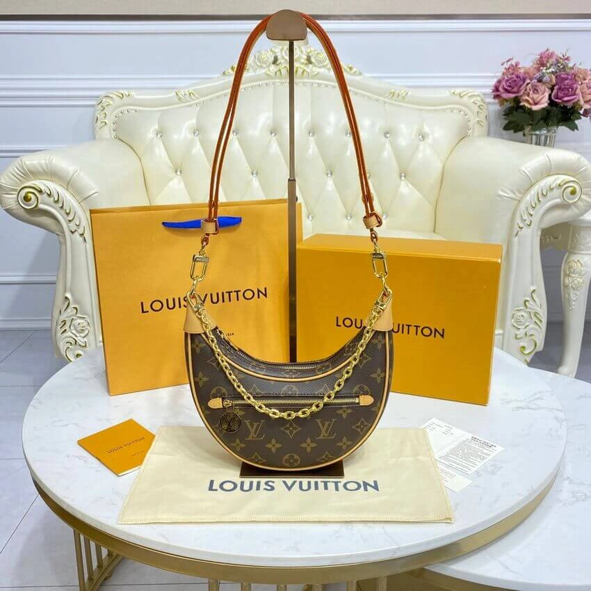 This stylish shoulder bag draws inspiration from classic half-moon silhouettes, updated for a modern look. Its body-friendly, compact shape makes it a comfortable and chic accessory for everyday use. Crafted from durable coated canvas featuring a timeless monogram print, it offers both resilience and sophisticated style.