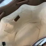 This dome-shaped backpack offers a blend of classic styling and modern versatility, crafted from a soft, coated microfiber fabric featuring a timeless monogram print. Trimmed with rich brown leather, this bag presents a sophisticated yet durable accessory for daily use or travel. A standout feature is its innovative strap mechanism; the shoulder straps can be easily adjusted and reconfigured, allowing the bag to be worn as a traditional backpack or converted into a stylish shoulder bag.