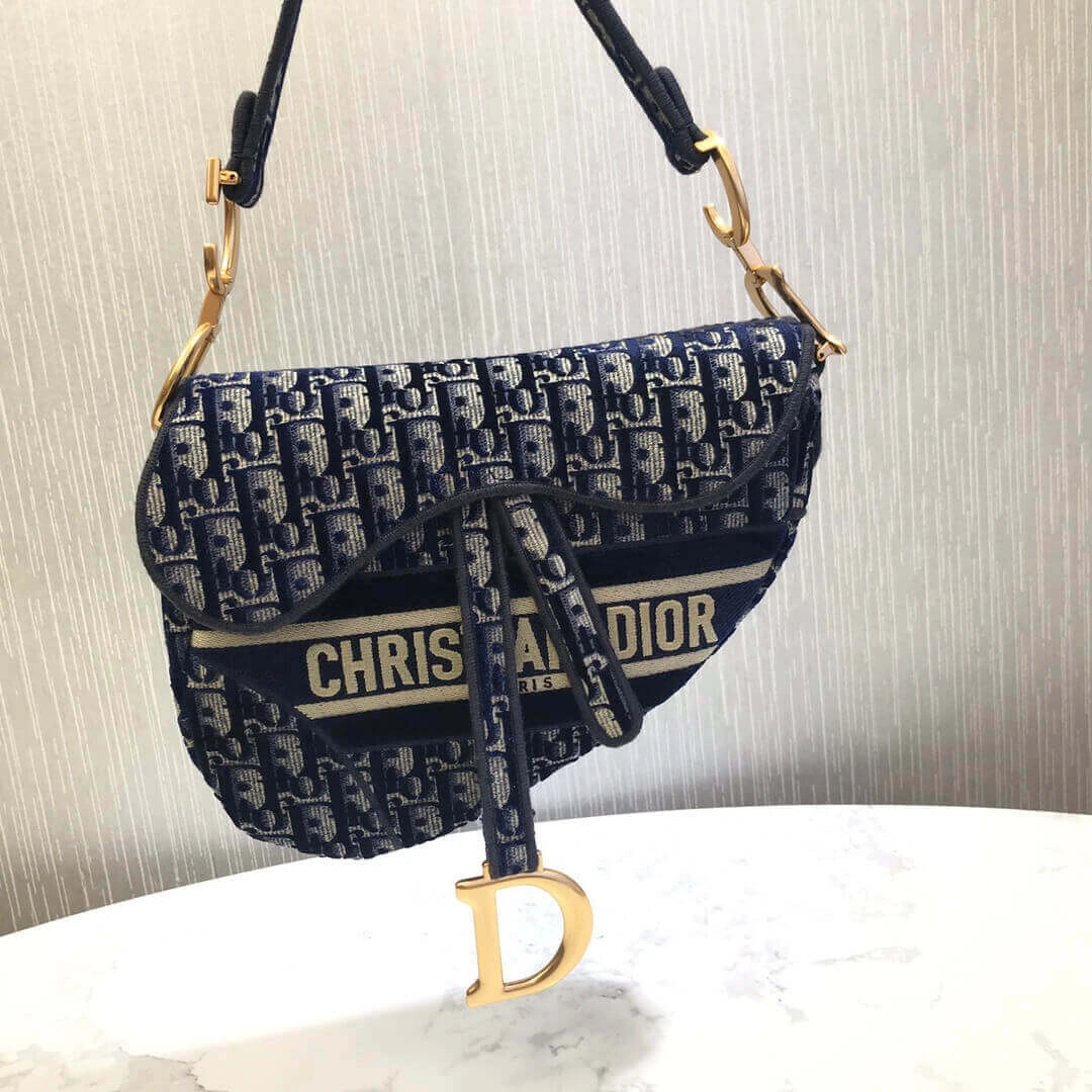This beautifully crafted shoulder bag offers a fresh take on a classic equestrian-inspired silhouette. Its distinctive saddle shape and unique flap closure create a modern and sophisticated look. The design is meticulously constructed from soft blue velvet, featuring an intricate, all-over monogram pattern embroidered with matte cotton thread for a stunning textural contrast. Finished with elegant antique gold-tone hardware, this piece is a testament to timeless style.