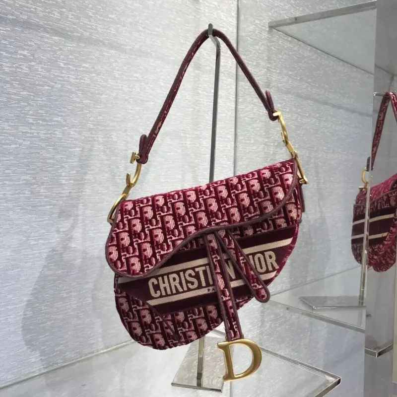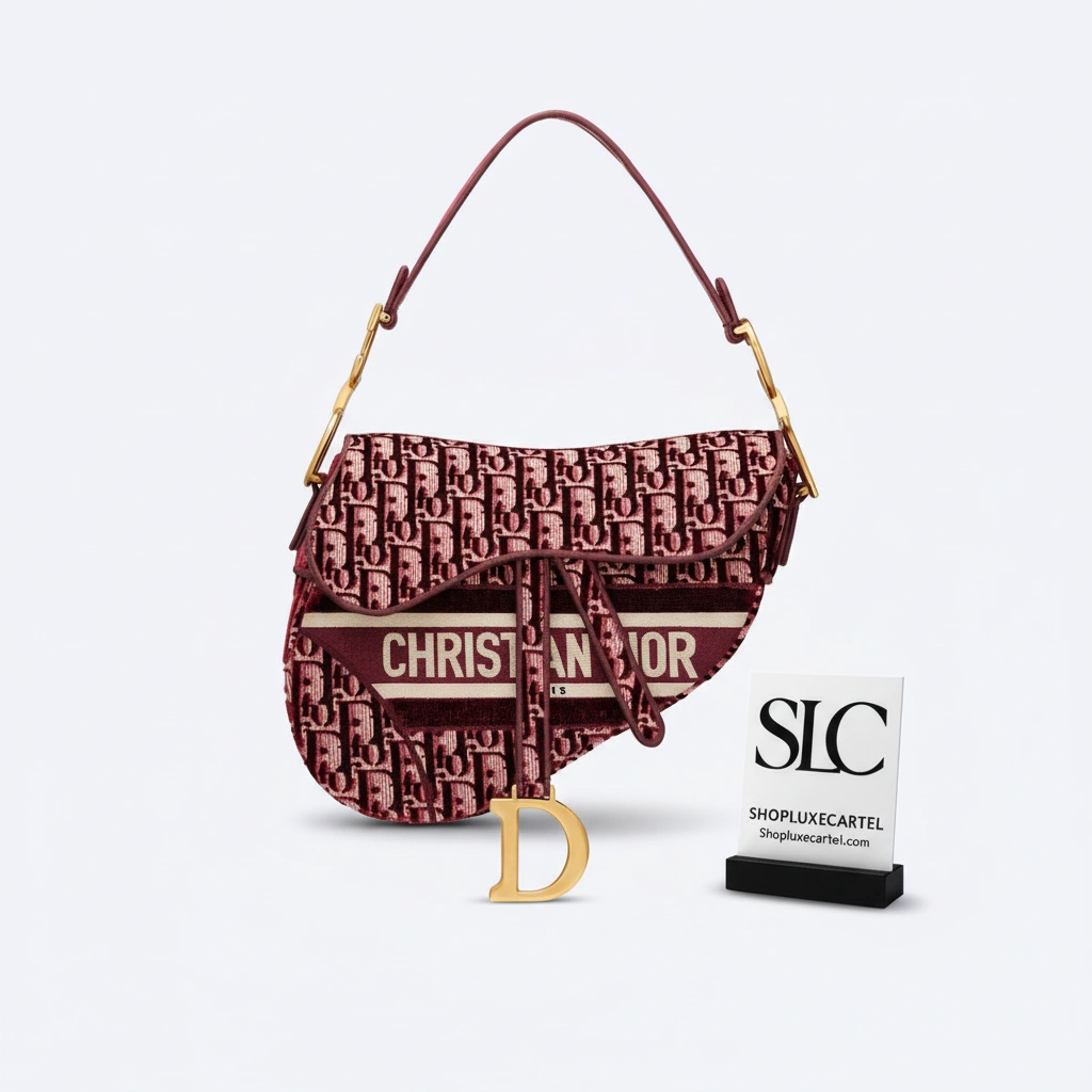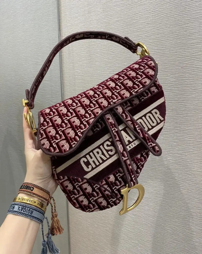 Monogram Print Embroidered Velvet Saddle Shoulder Bag M0446C