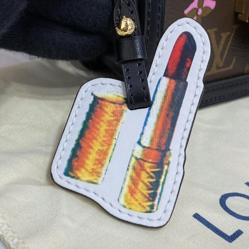 This beautifully structured mini handbag offers a playful and feminine update to a classic silhouette. It is crafted from a durable coated canvas featuring a timeless monogram print, which is elegantly highlighted by floral details in soft pink and vibrant red. The design is perfectly complemented by smooth cowhide-leather trim and gleaming gold-tone hardware, making it a sophisticated choice for both day and evening wear.