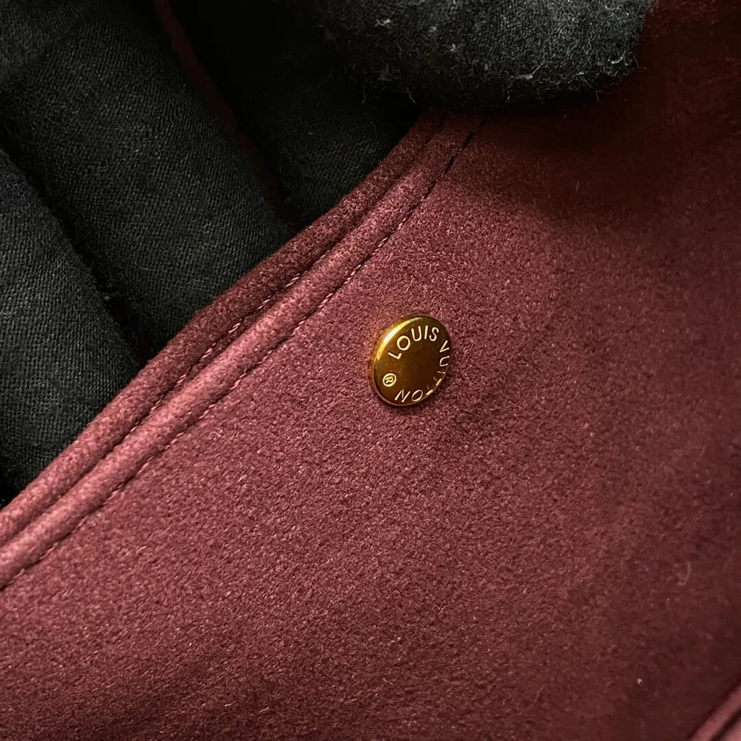 Crafted from durable coated canvas adorned with a classic monogram print, this piece features smooth cowhide-leather trim and polished gold-tone hardware. The interior is lined with a soft microfiber fabric and includes a secure leather drawstring to keep your belongings safely enclosed.
