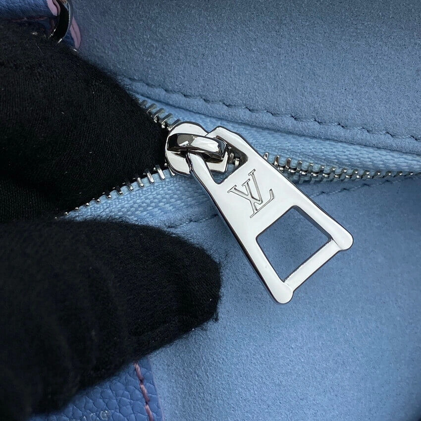 This beautifully structured tote is crafted from embossed grained cowhide leather, treated with a specialized spraying technique to achieve a subtle, almost iridescent quality in a lovely Lilas Purple hue. The all-over geometric monogram print lends a timeless appeal to this sophisticated and highly desirable silhouette.