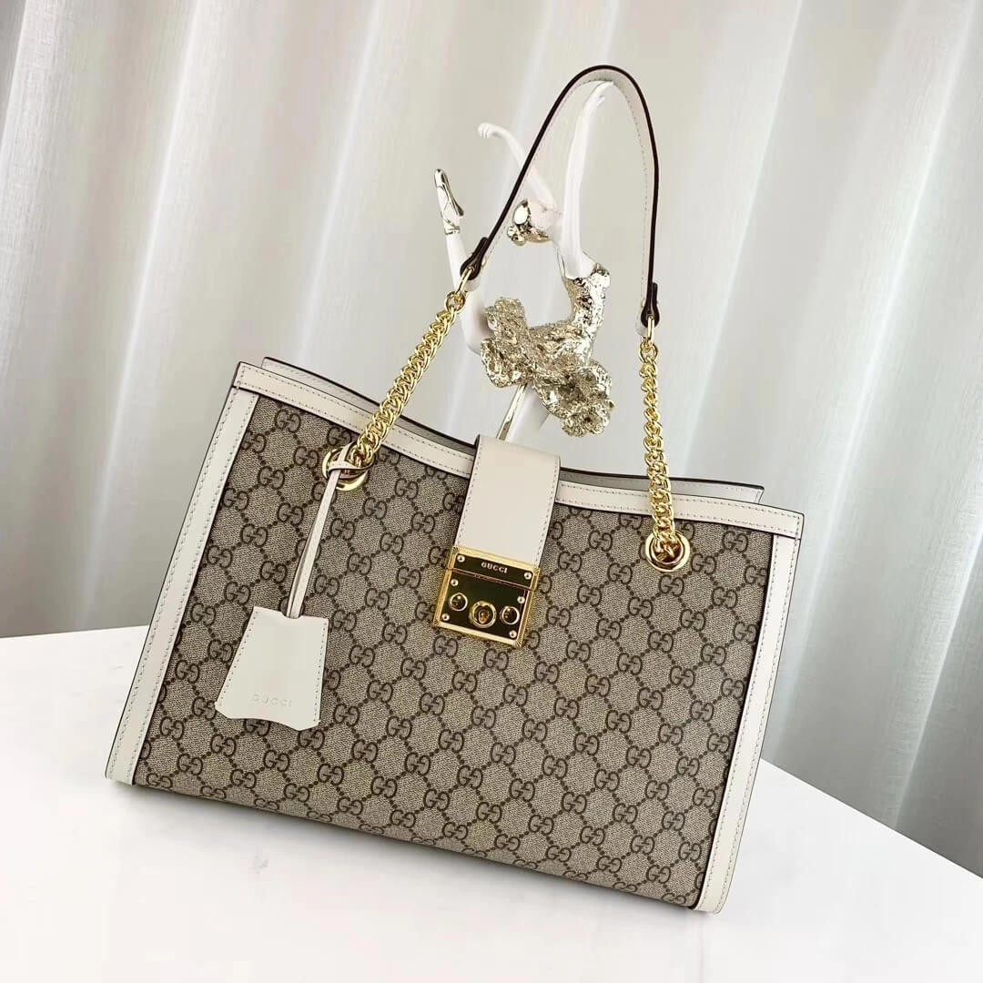 Discover a timelessly structured shoulder bag crafted from durable coated canvas, featuring a sophisticated all-over monogram print. This elegant piece is accentuated with crisp white leather details and gleaming gold-toned hardware, creating a look of classic luxury. A standout feature is the functional padlock closure, which secures the front flap and comes with a key elegantly housed in a detachable leather holder.