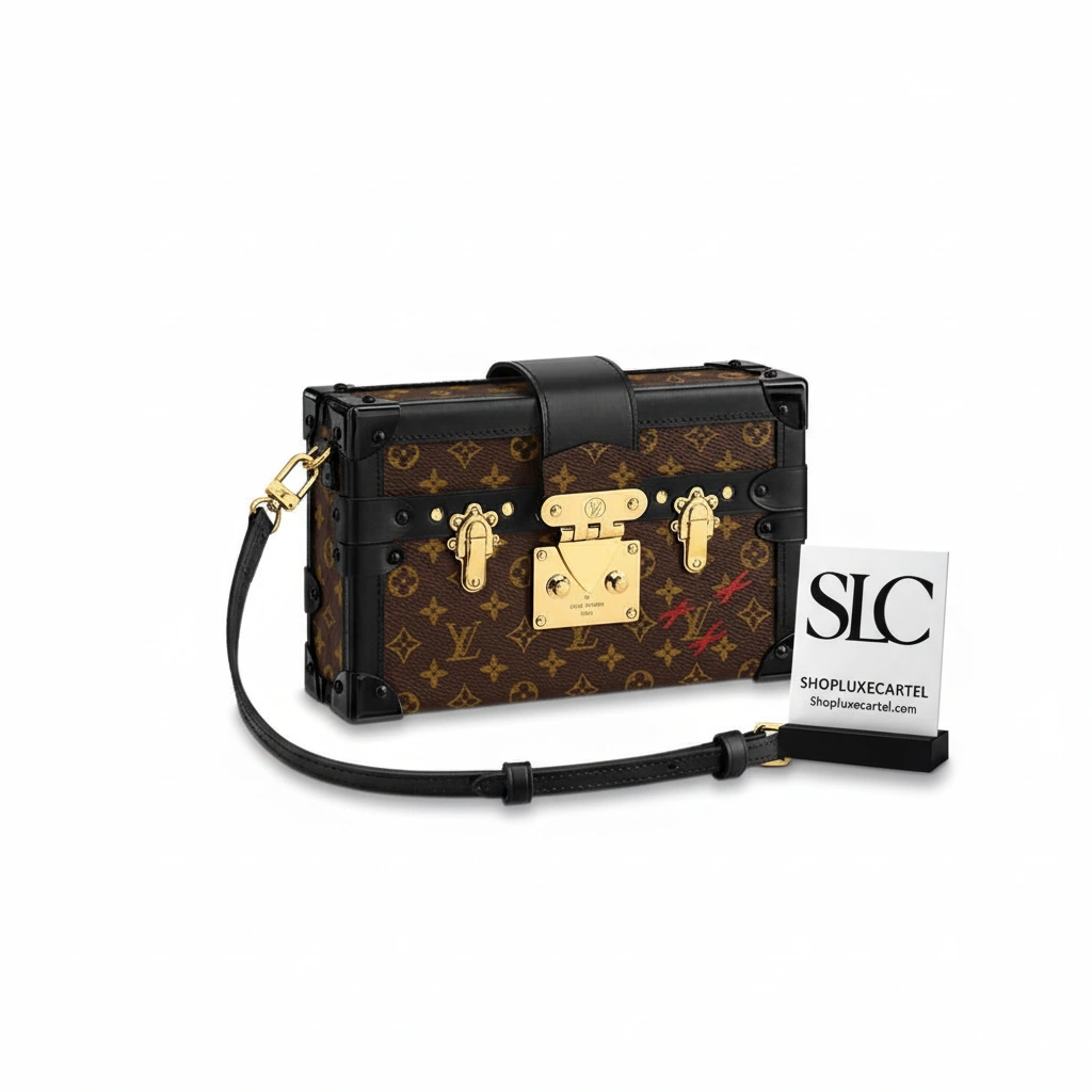 Every detail of this exquisite handbag is inspired by the rich history of classic travel trunks. It showcases a distinctive rectangular shape, reinforced corners, and gleaming gold-tone hardware, including an ornate lock and fittings. This impeccably crafted “little trunk” is a versatile statement piece that transitions effortlessly from day to evening outings.