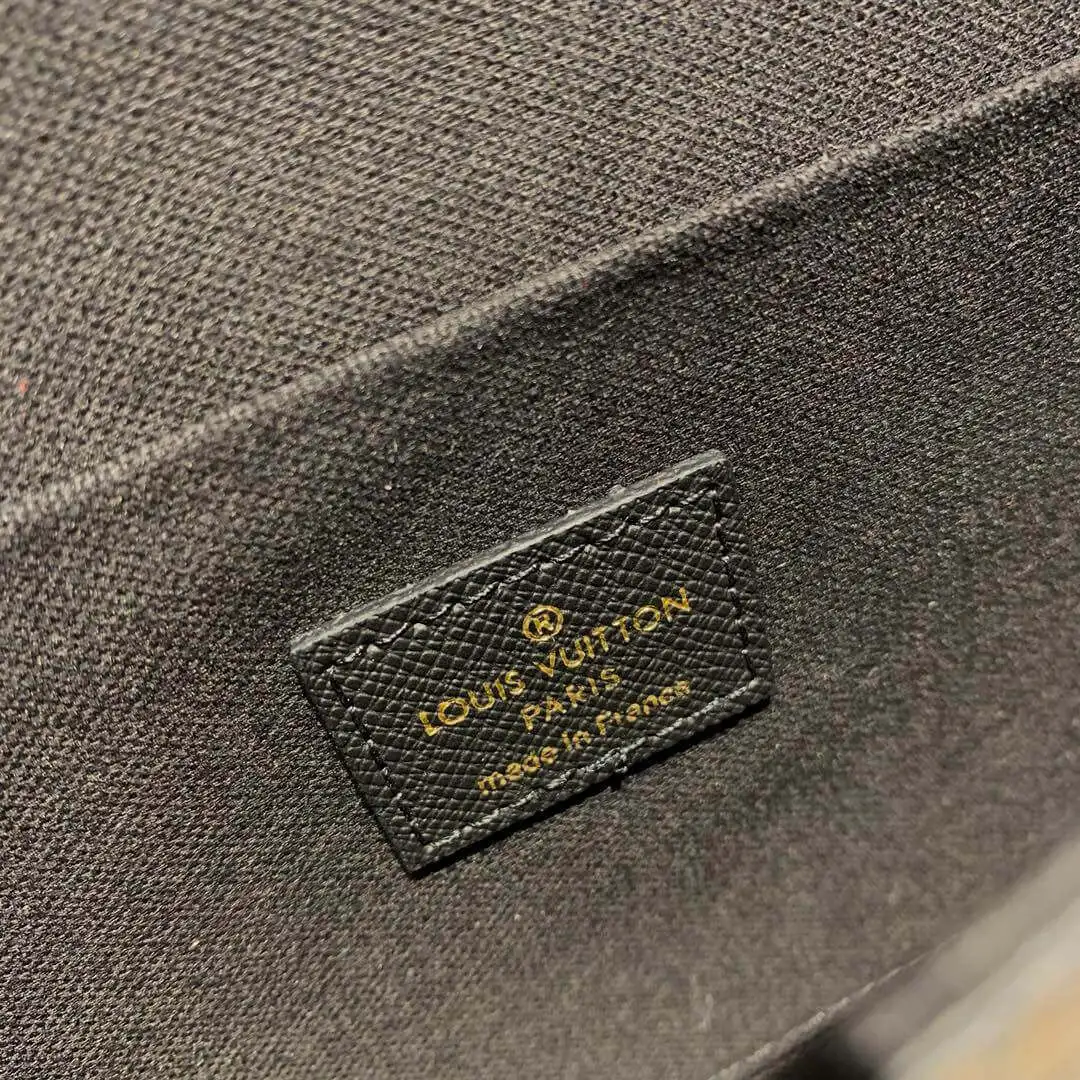 Experience effortless style and superb functionality with this versatile pouch, meticulously designed to carry and organize your most important daily essentials. Crafted from a durable coated canvas featuring a classic monogram print, this bag is the epitome of timeless chic. Its clever construction allows it to be carried as a sophisticated clutch or worn as a shoulder bag, adapting perfectly to any setting.