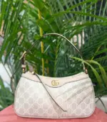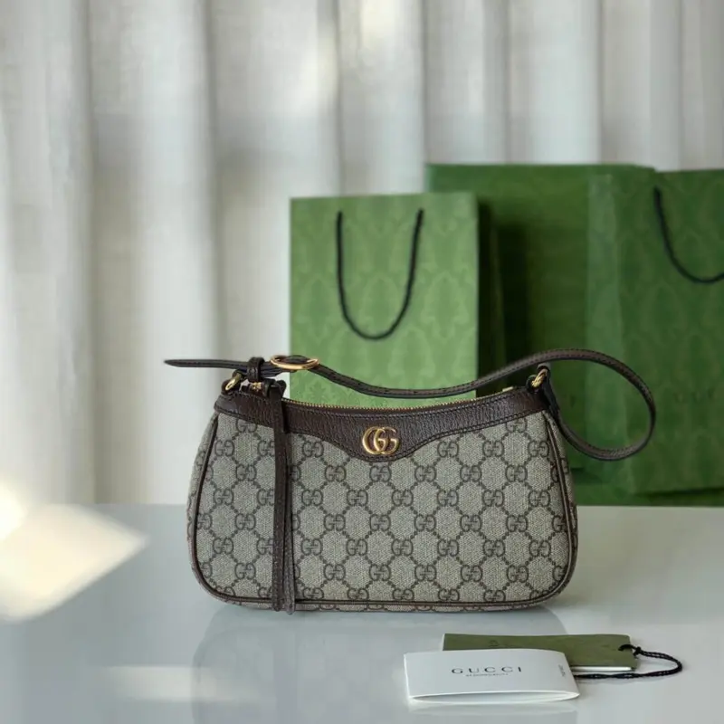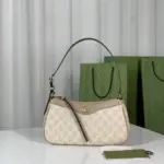 Its compact, thoughtfully designed silhouette is perfect for carrying essentials, while the adjustable top handle allows it to be comfortably held or worn over the shoulder. The bag is finished with a polished, interlocking G-shaped hardware emblem and a secure top zipper, making it a perfect blend of iconic style and practical design.