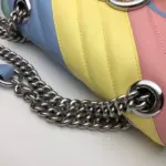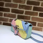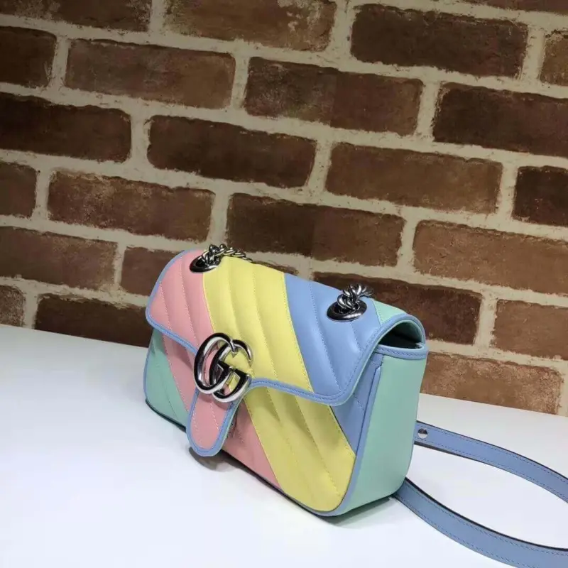 Elevate your accessory collection with this beautifully crafted mini shoulder bag, featuring a vibrant, multicolored pastel palette in a sophisticated quilted pattern. The compact design is perfect for carrying your essentials in style, with a structured silhouette and polished gold-toned hardware that adds a touch of timeless elegance. Its eye-catching diagonal matelassé finish makes it a standout piece for any occasion.