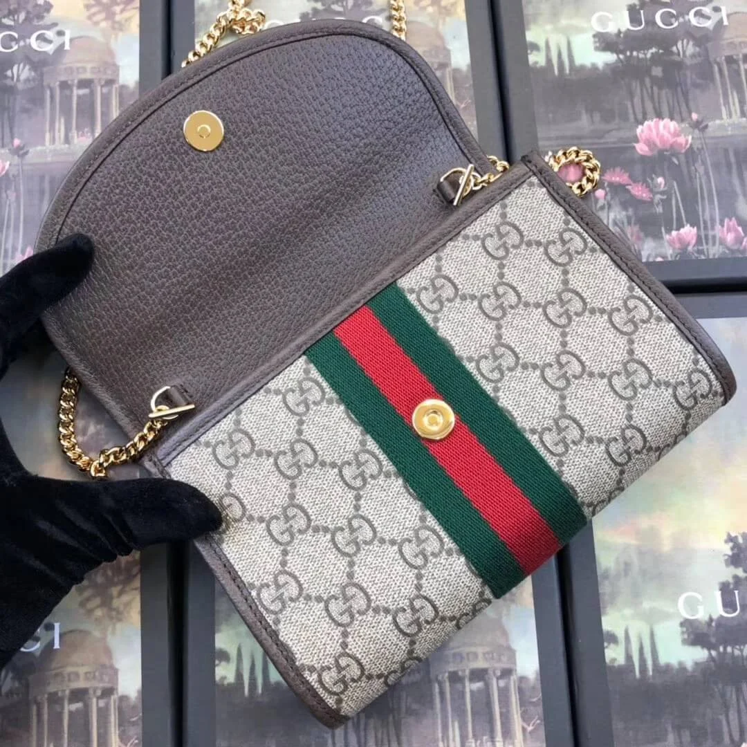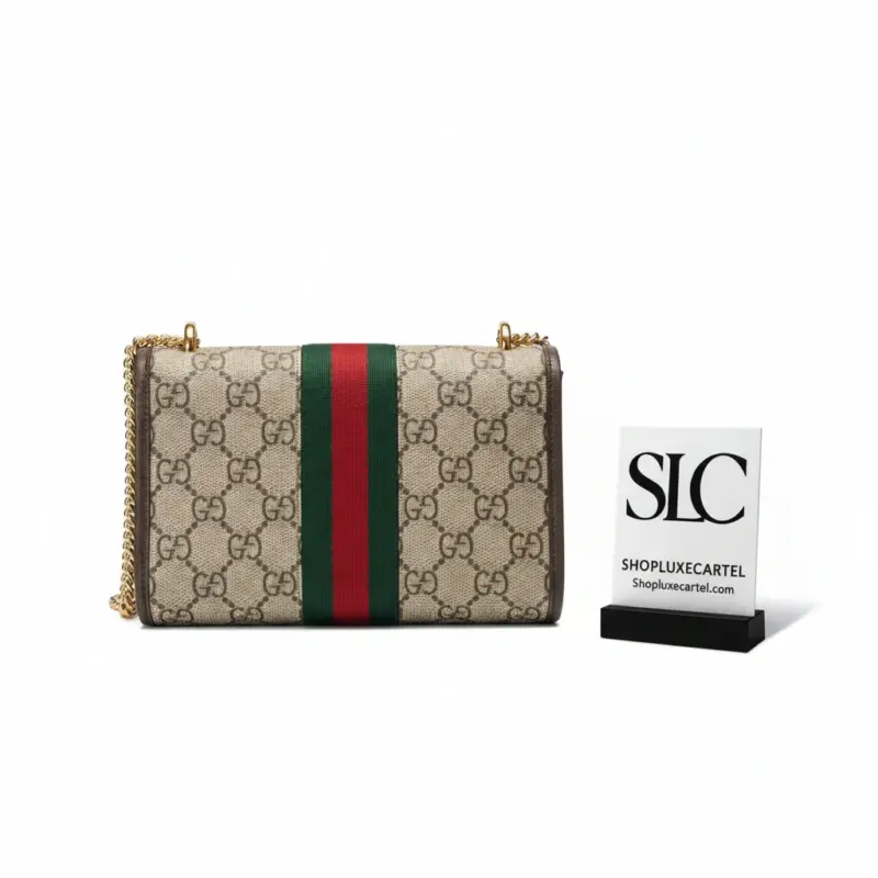 This exquisite mini shoulder bag combines timeless style with eye-catching details. Crafted from a durable, coated canvas featuring a classic monogram print, this accessory is elegantly accented with fine leather trim and a signature green and red striped webbing detail. Its compact silhouette makes it a perfect choice for both day and evening wear, offering a sophisticated and polished look.