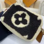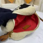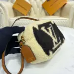 Make a chic and playful statement with this uniquely textured crossbody clutch. Crafted from wonderfully soft and fluffy shearling, this bag features a bold, oversized pattern in contrasting tones of beige and brown for a standout look. Its compact and versatile design allows it to be carried as a stylish clutch or worn as a hands-free crossbody with the included shoulder strap, making it a perfect accessory for any occasion that calls for a touch of cozy elegance.